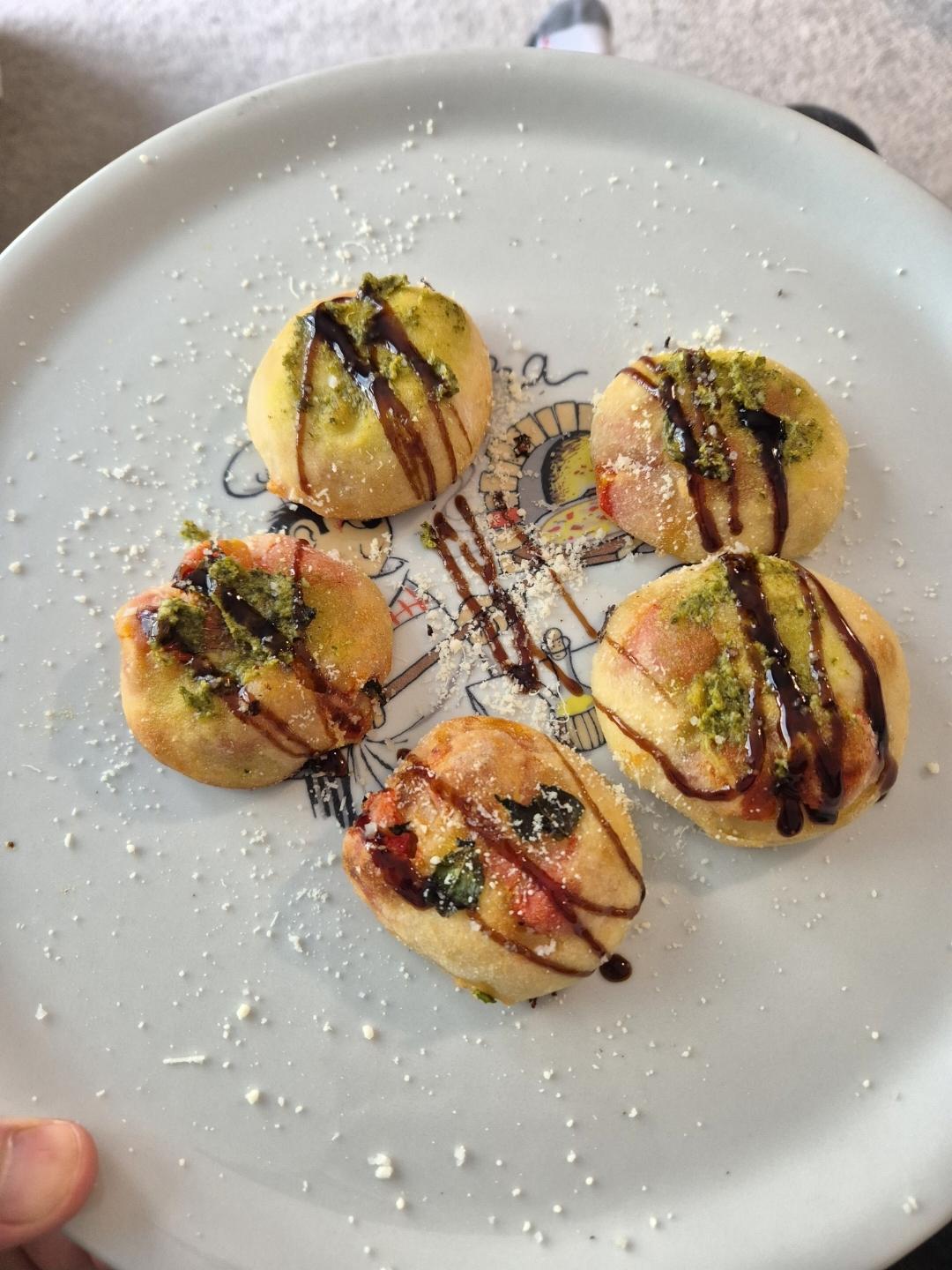 I made leftover pizza dough into these small calzone bombs.filled with cherry tomatoesa and pesto, olive oil and balsamic glaze, and a dash of parmesanby Ok_Link_2925 homemadeitalian foodItalian Recipes 1 Comment yarevande 4 days ago Looks deliciousWrite A CommentYou must be logged in to post a comment.