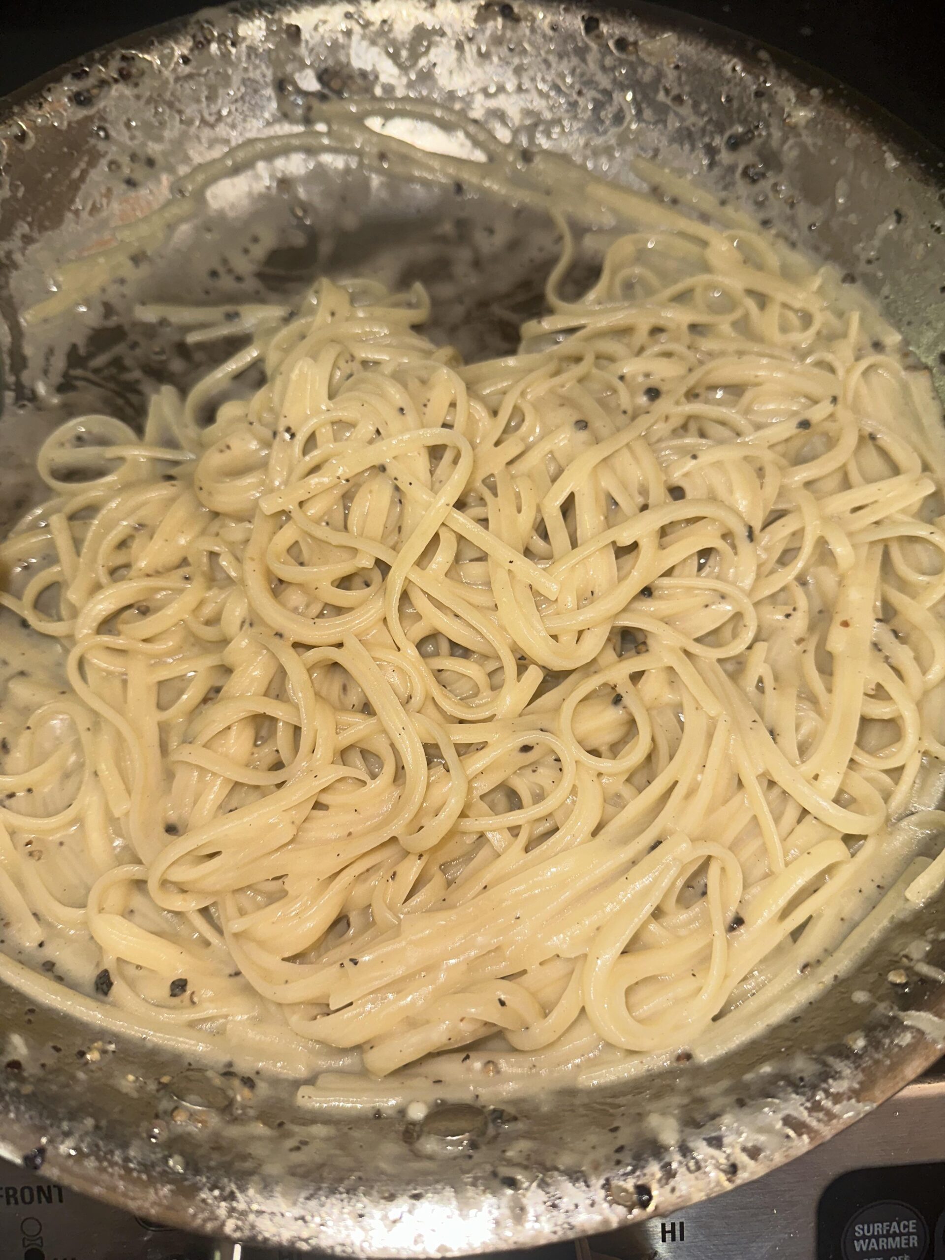 this looks like a proper cacio e pepe. there’s pepe. there’s sauce. linguini is great too. nice job!