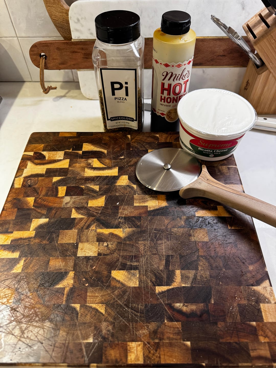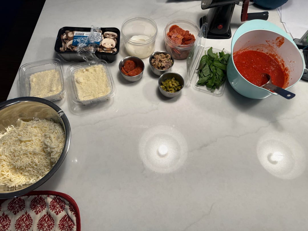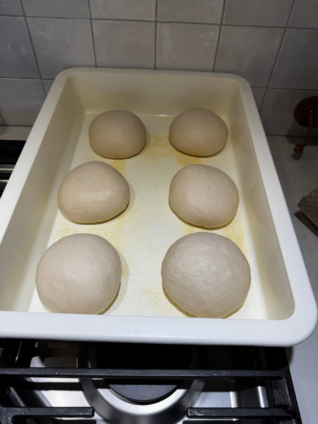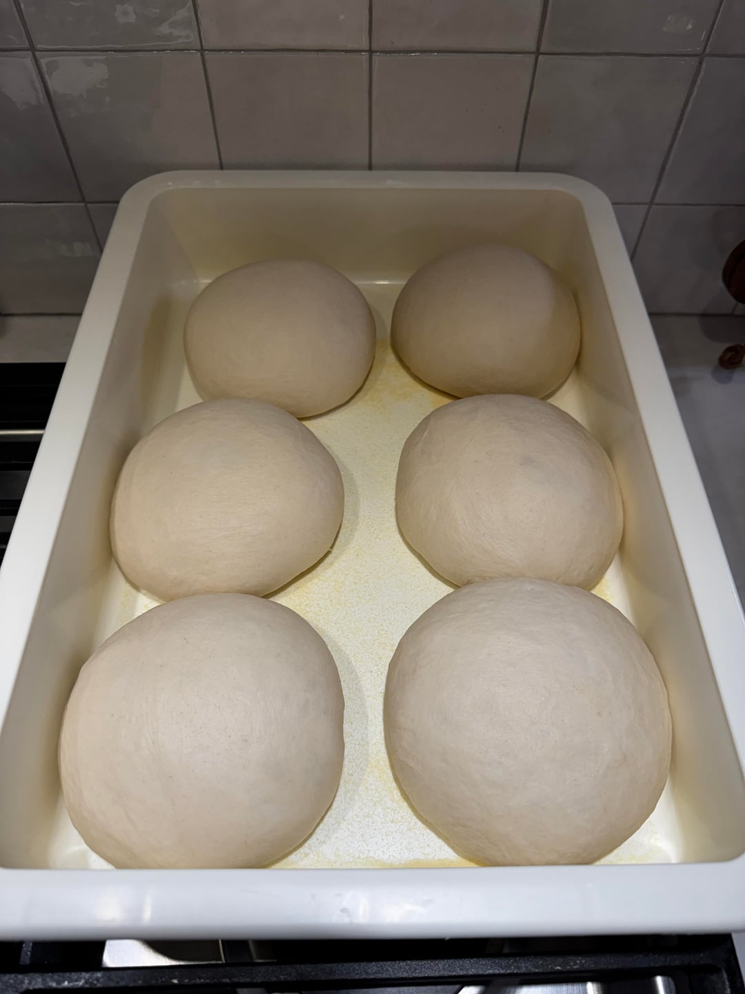 I had six dough balls for my Friday night, family dinner. There are four of us, but I always make some extra pizza to go in the freezer for later.
