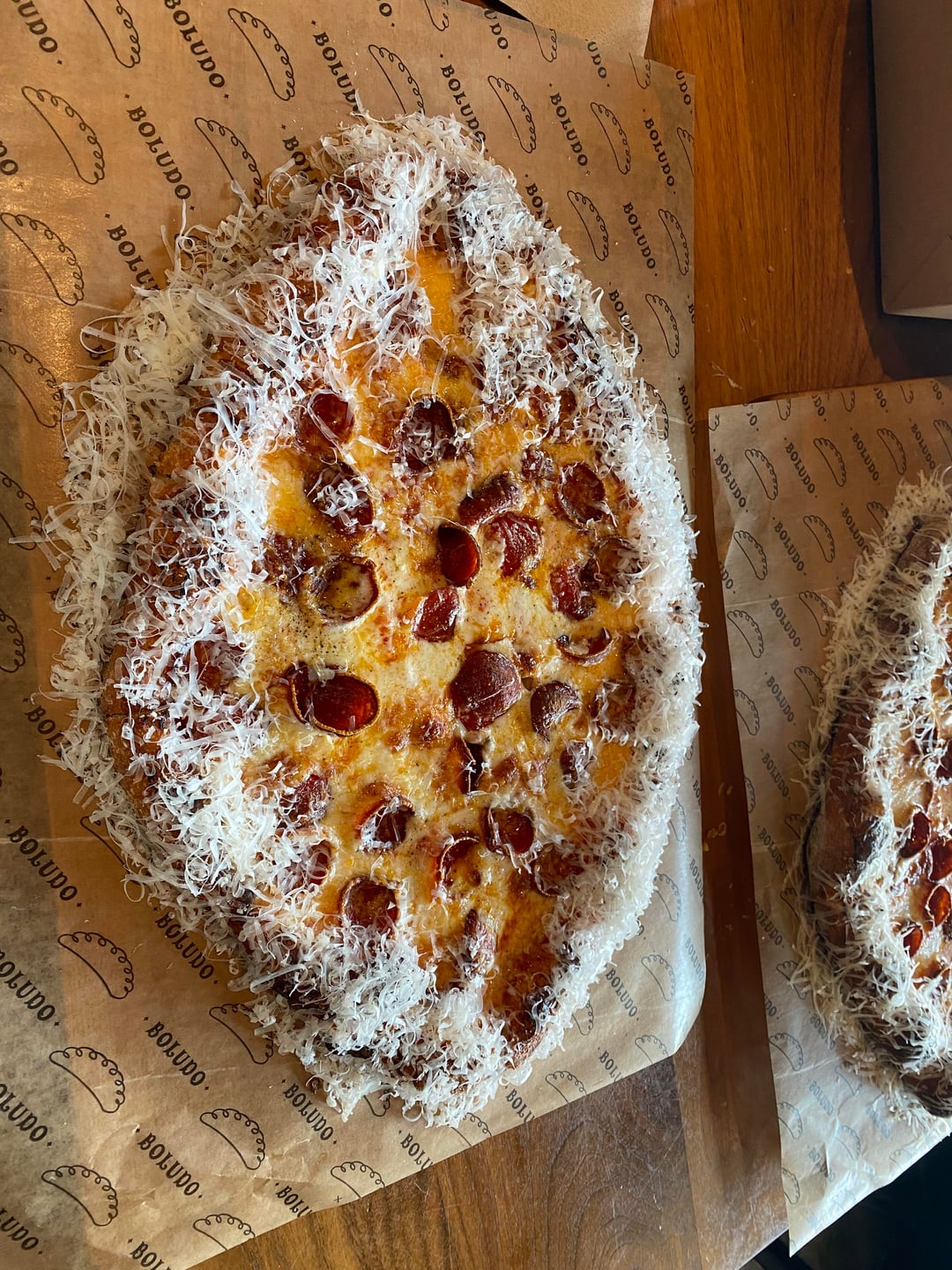 Fitnessziel heute: Pizza sicher zum Mund bewegen.