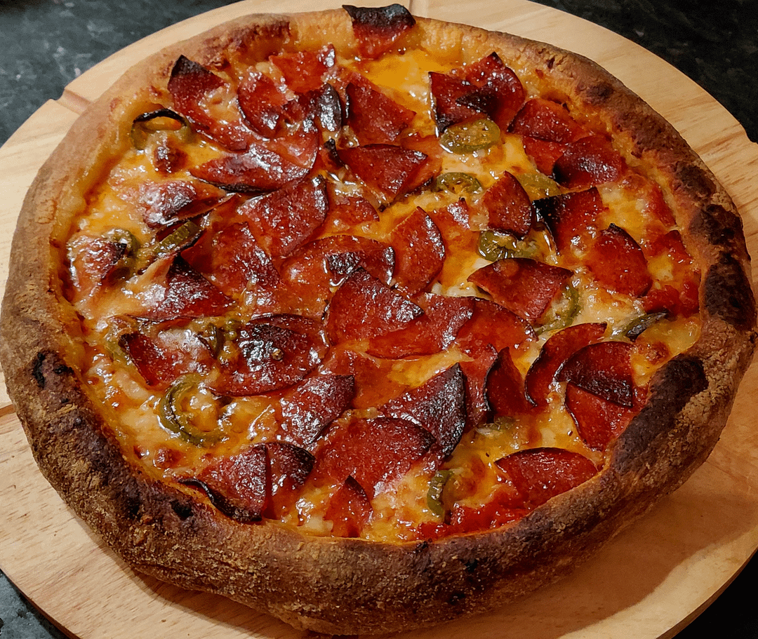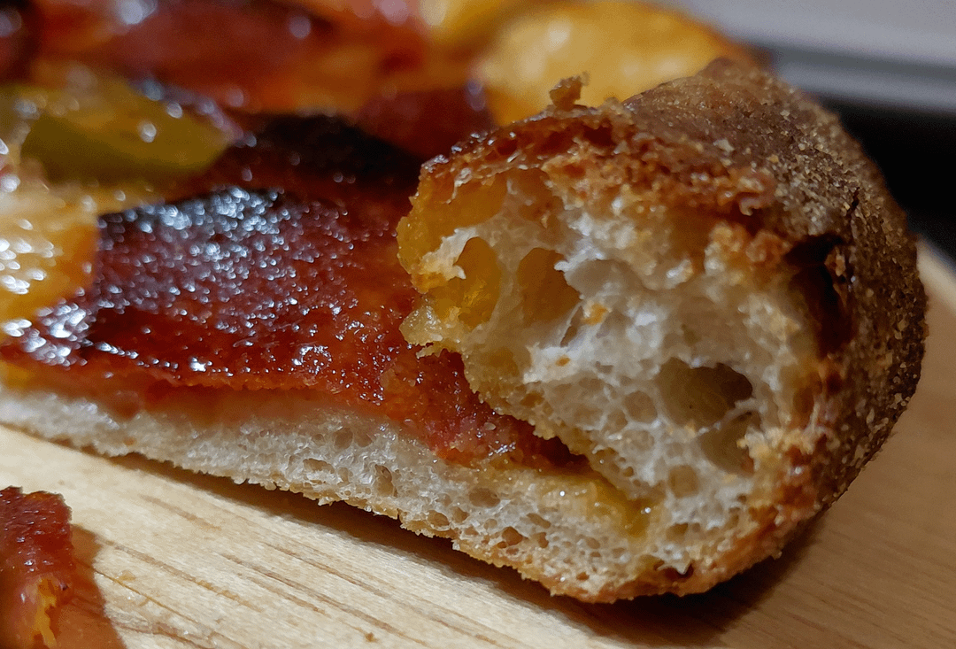 Tasted good. The oil from the pepperoni made the very centre slightly soft but the base came out well. I know the crust won't be great without a steel and the underside is pale too. I feel like I'm making some progress though.