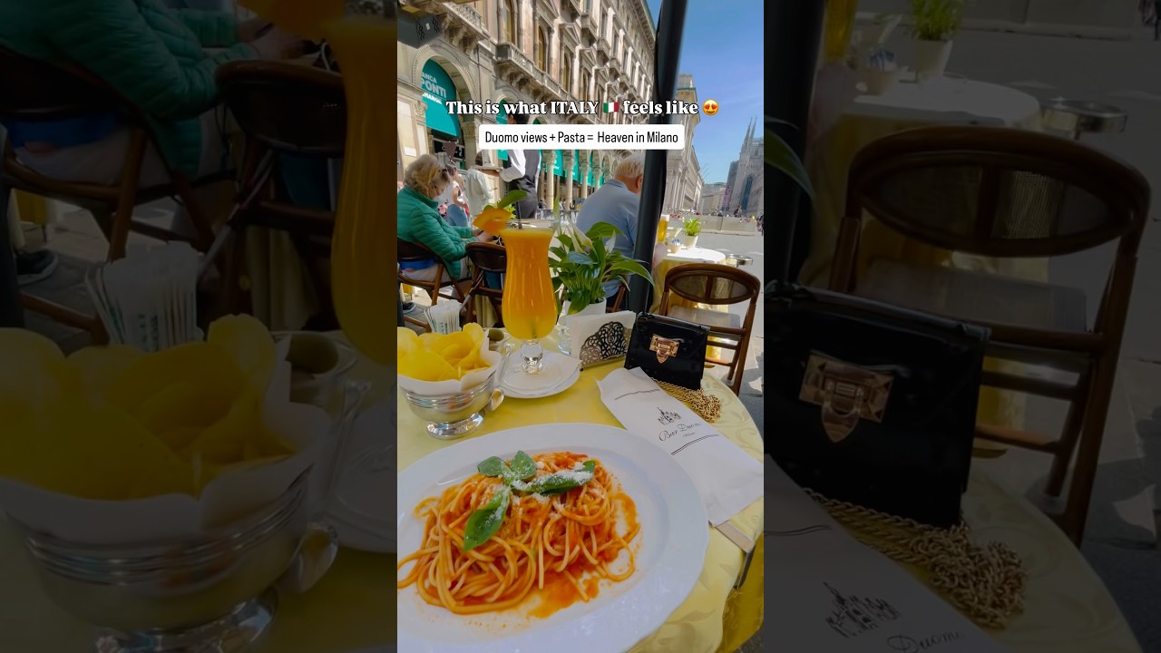 There’s no better feeling than sitting in Milan, enjoying fresh pasta & a drink… with the iconic Duomo di Milano right in front of you 🇮🇹