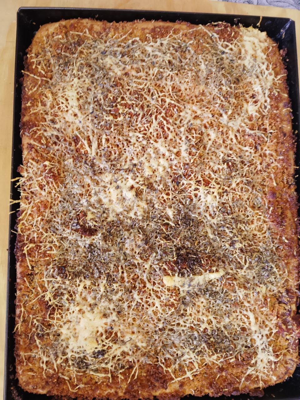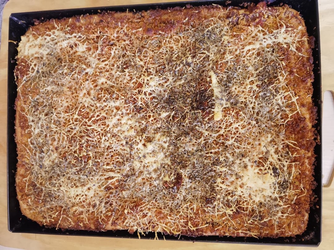 Recipe for a 30 x 40 cm baking sheet. Yield: ~685 g of dough (0.57 g per square cm of the baking sheet).