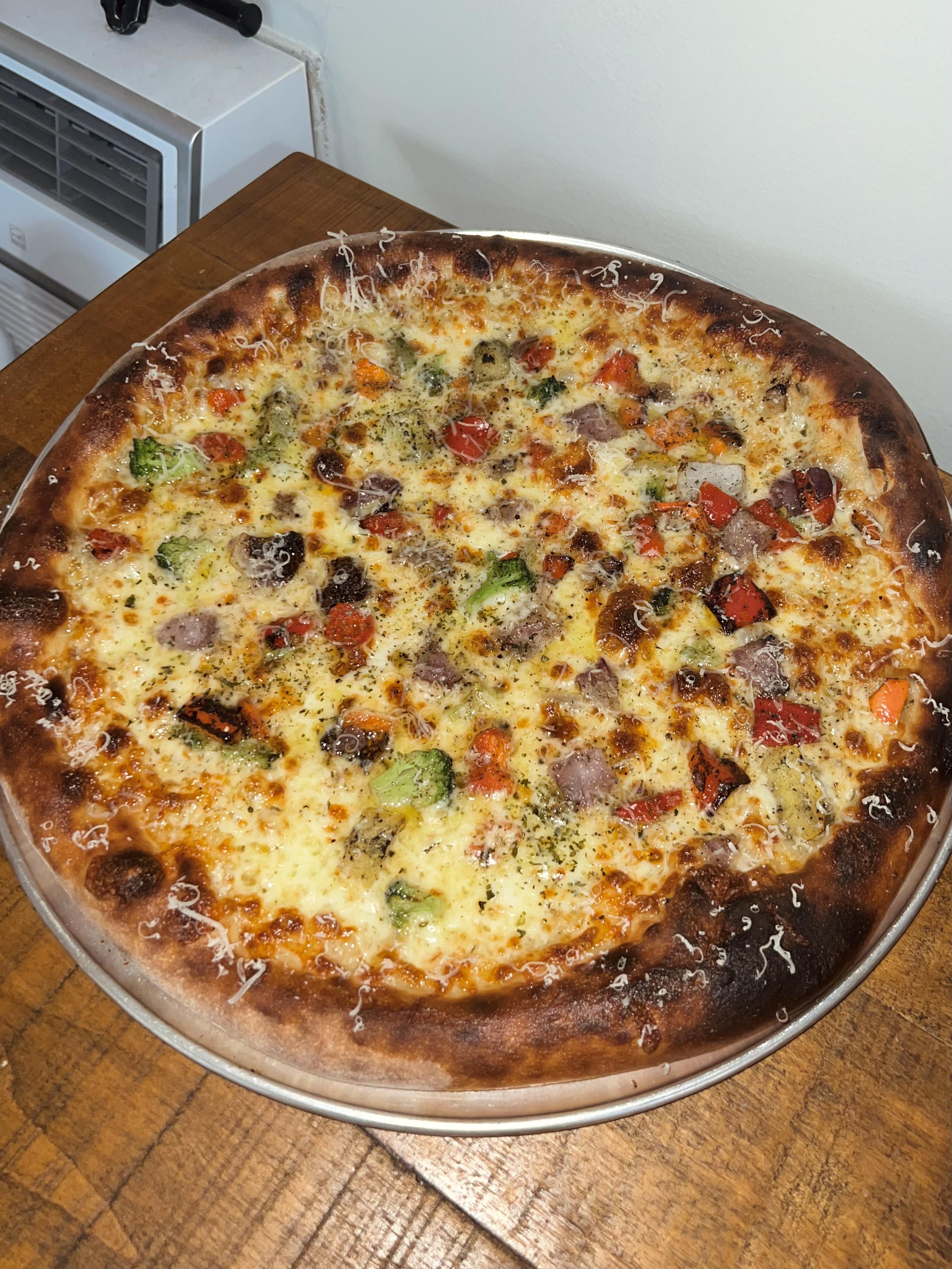 Fire roasted veggies, WMLM mozz, black pepper, EVOO, grater parm post bakeby PlainPies NORMAL OVENpizzaWrite A CommentYou must be logged in to post a comment.