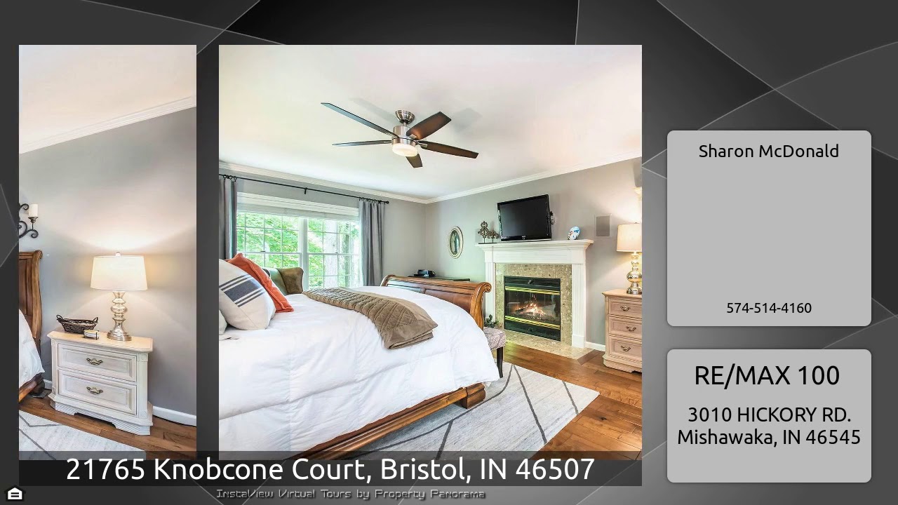 The Virtual Tour for the property at 21765 Knobcone Court, Bristol, IN 46507 listed for $379,900: Other homes for sale by Sharon McDonald of RE/MAX 100: Welcome home to this lovely Town & Country custom built home! As you enter you'll be greeted by a large Foyer boasting gorgeous Italian Marble flooring and European Chandlier! The kitchen is a cook's dream with all updated stainless steel appliances, double ovens, granite countertops, and a perfect dining area overlooking backyard! Kitchen is open to spacious Great Room with Fireplace. In addition, the Formal Dining Room and Living Room …