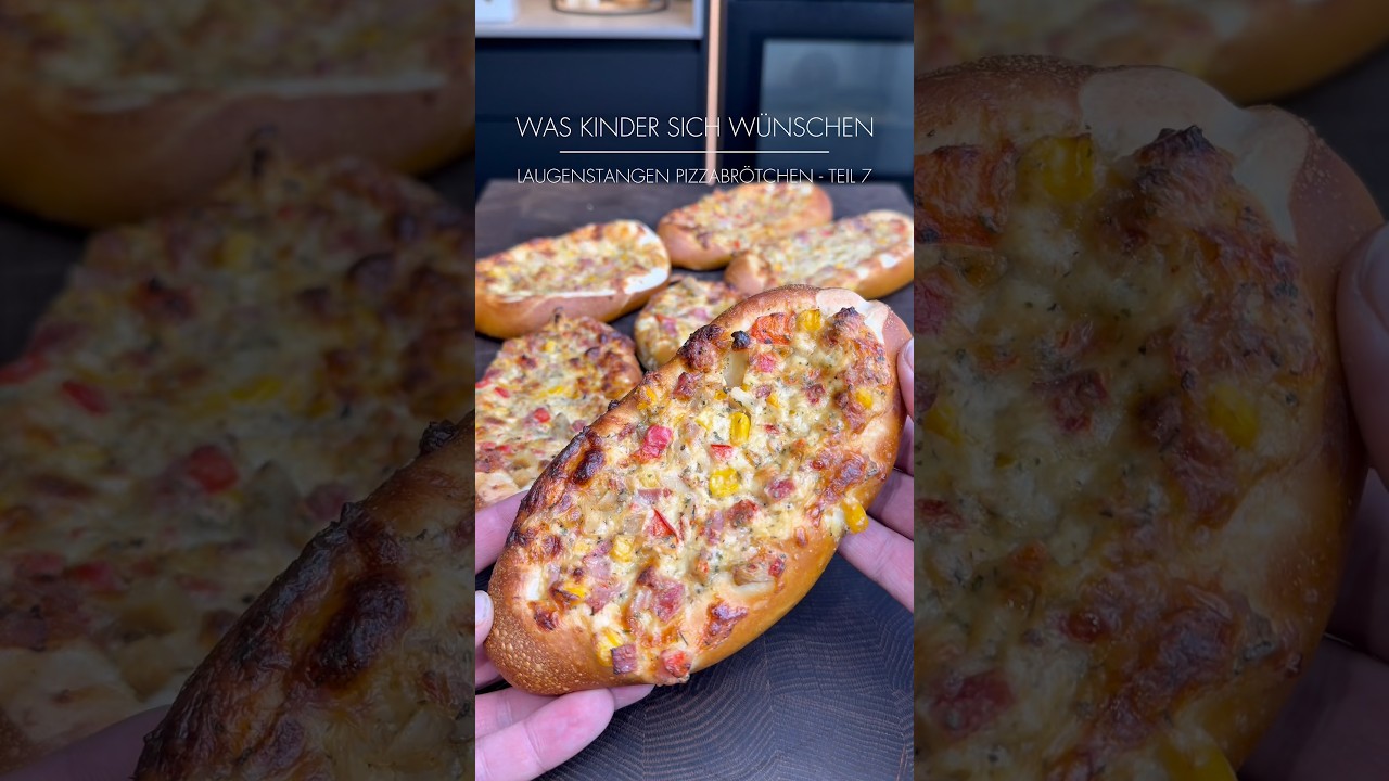 Backblech mit Backpapier auslegen. Laugenstangen leicht antauen lassen. In der Mitte einschneiden und auseinanderdrücken, sodass sie flach wie kleine Pizzen werden.