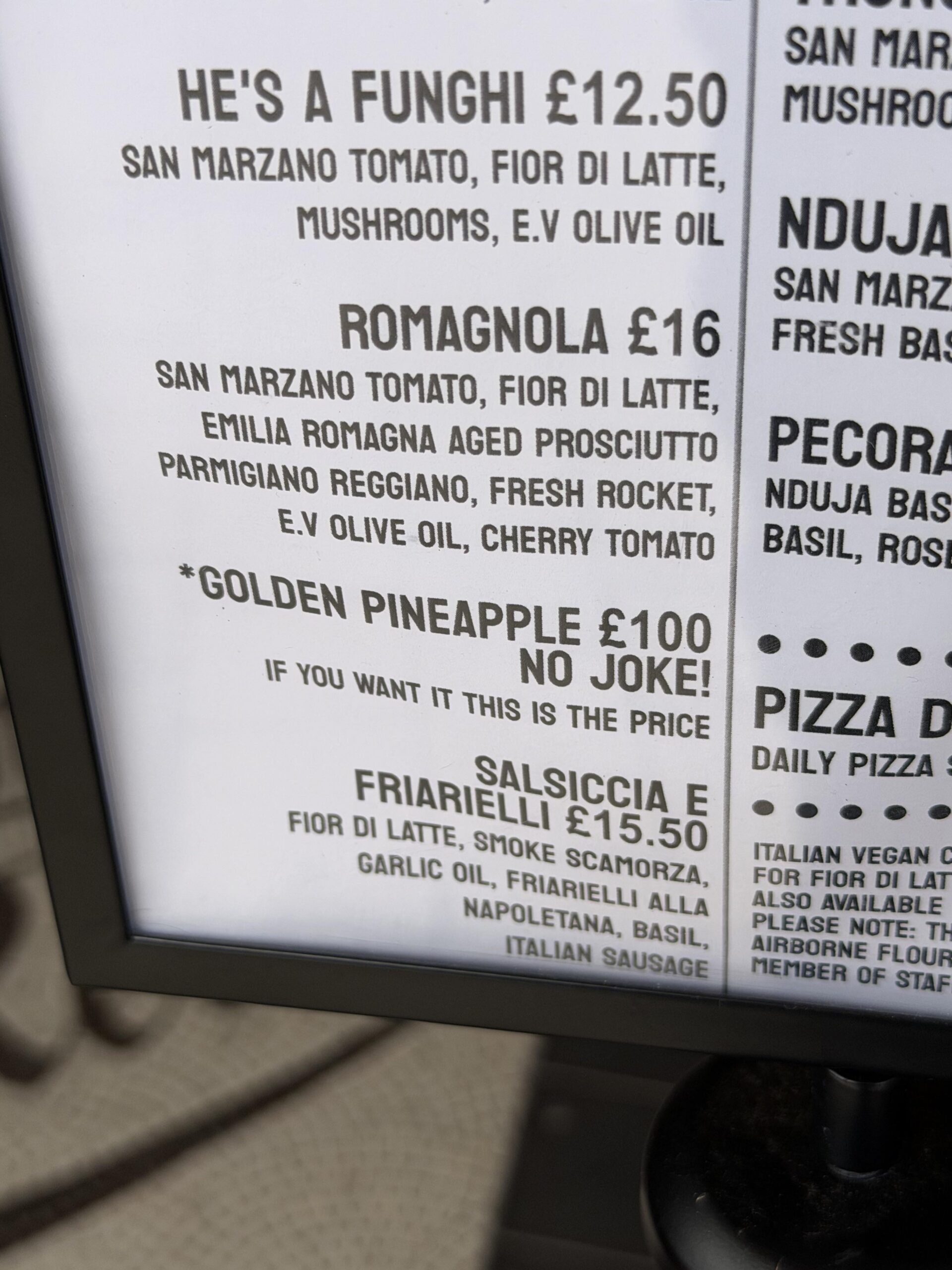 The Price of Pineapple Pizza at this shop by snarkicon pizzaTakeaway 6 Comments ceejayoz 1 day ago This isn’t pineapple hate. There’s an actual pineapple variant that sells for like $50 each. Bullshit_Conduit 1 day ago Let me get a golden pineapple and a Tito’s and vodka. davecrist 1 day ago There’s a hot dog grill in Raleigh, NC (Roast Grill — Hi George!) that will kick you out if you ask for ketchup.Some folks are purists. Meh. mango_carrot 1 day ago What does the * text say? Z0diaQ 1 day ago Curious what location KiwiNeat1305 1 day ago So cringe. Pineapple hate is so cringe and sad.Write A CommentYou must be logged in to post a comment.