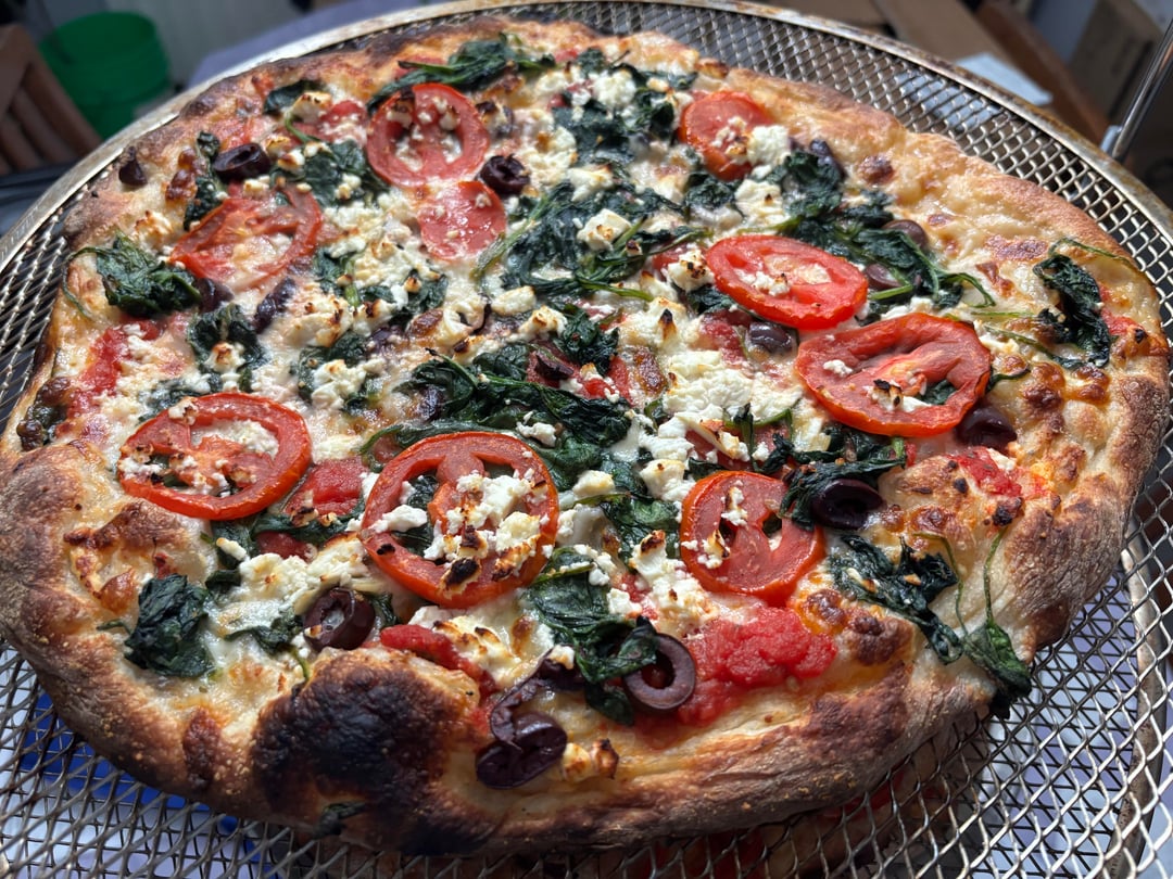 3 Greek with spinach, Kalamata olives, feta cheese, and tomatoes