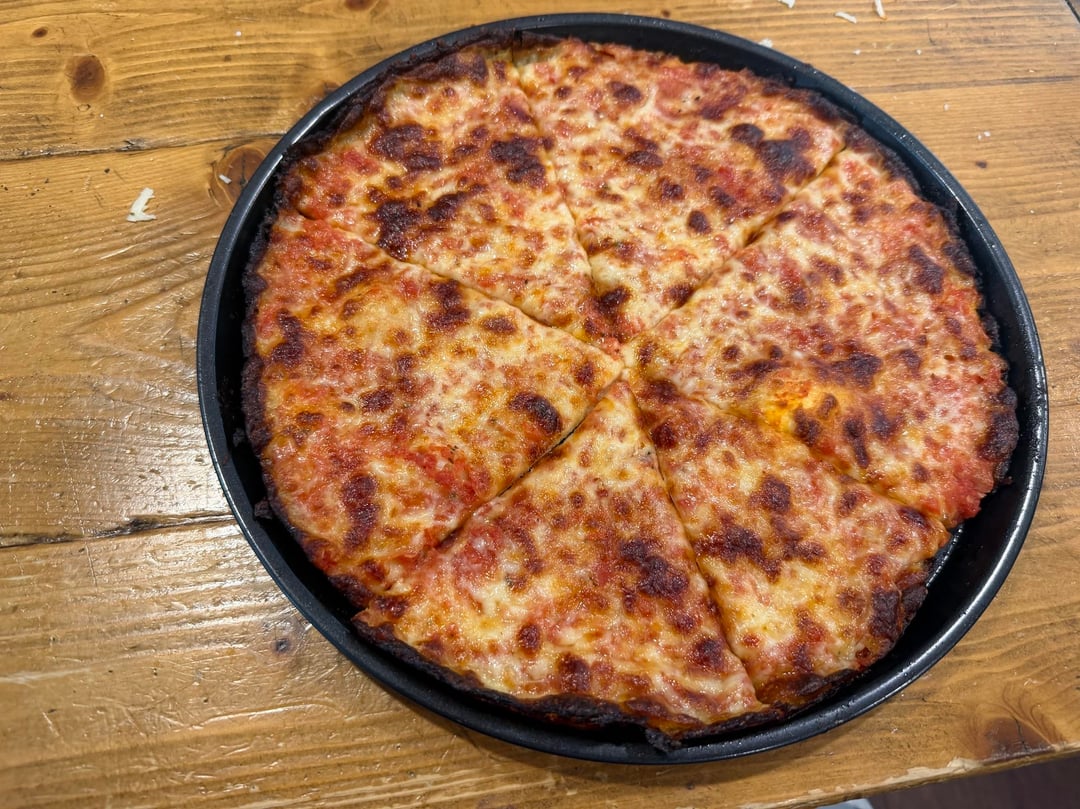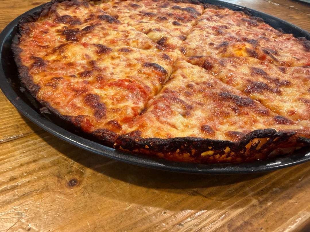 Second attempt using [https://barpizzabarpizza.com/recipe/homemade-south-shore-bar-pizza-dough-recipe/\] didn't taste righit with cheddar, so this one is all whole-milk mozzarella.