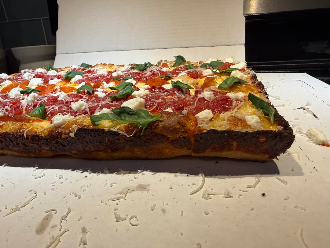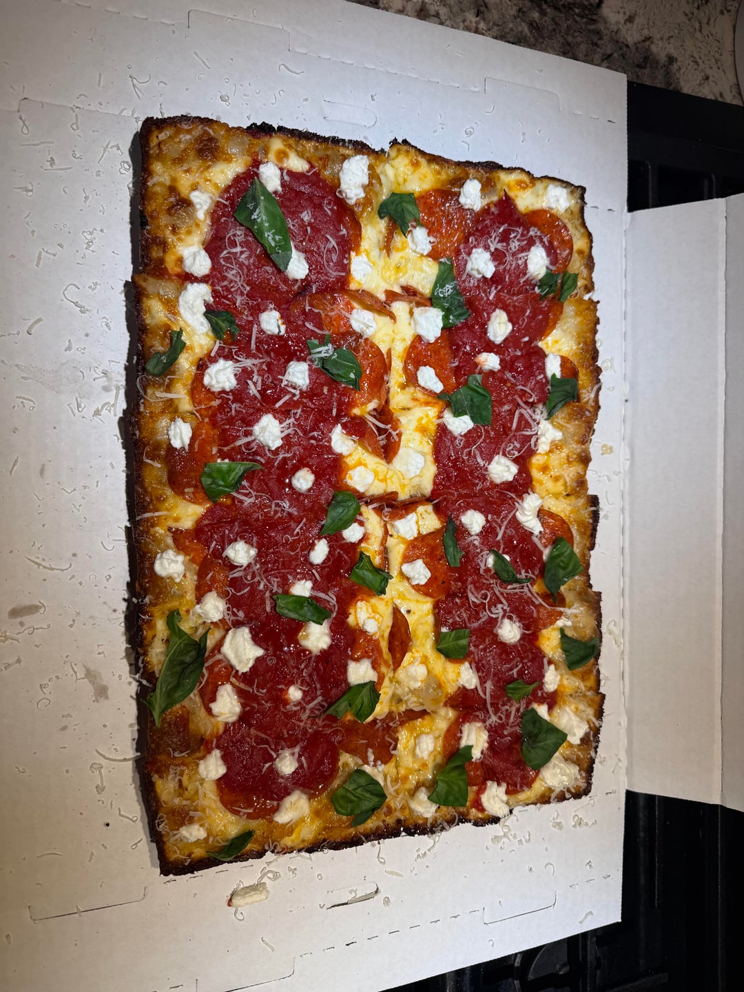 wisconsin brick cheese, pepperoni, ricotta, scotch bonnet hot honey,& basil. 48hr 72% hydration hybrid with 10% sourdough starter.by ImChrjs NORMAL OVENpizzaWrite A CommentYou must be logged in to post a comment.