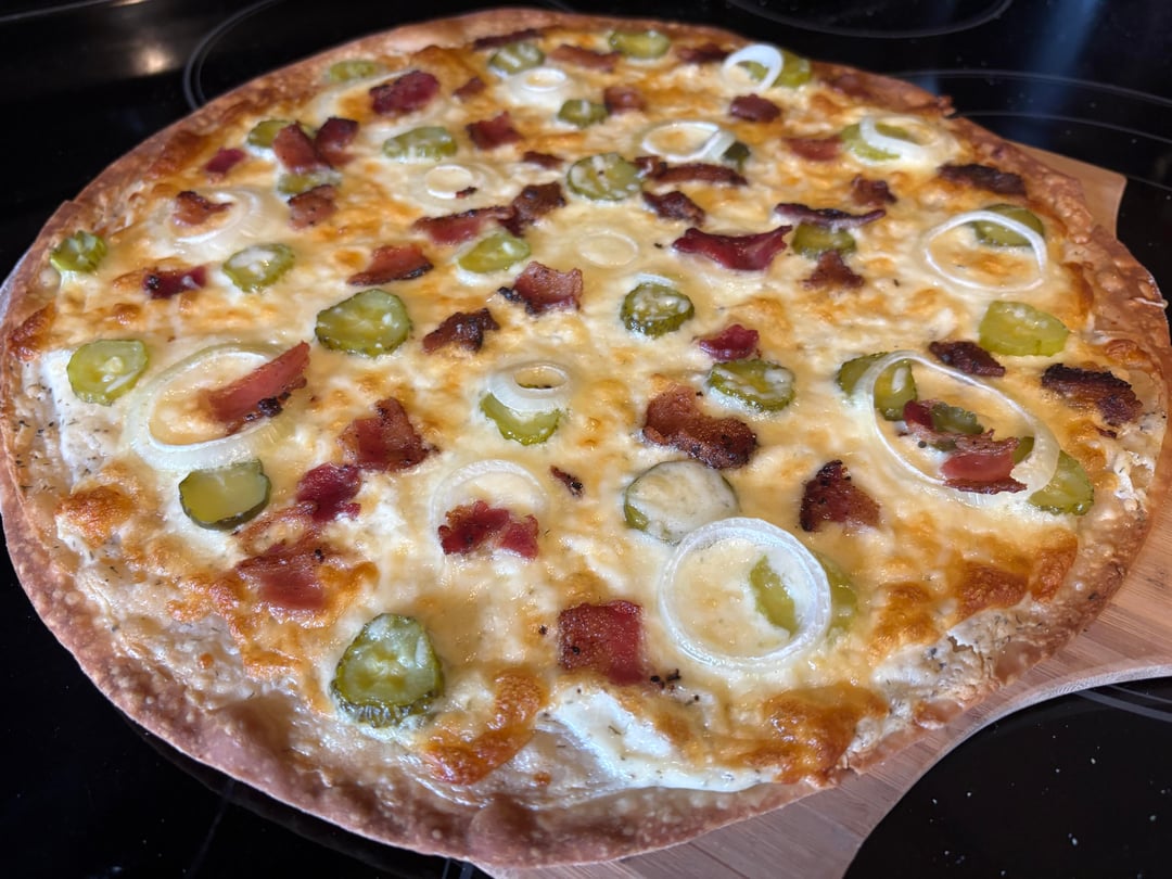 Tried the Kenji Lopez Alt Chicago cracker thin dough for the first time. I left it in the refrigerator 3 days before rolling out and letting sit overnight. It tastes fine but it’s much thinner than I was expecting and I didn’t roll it out as big as his does.
