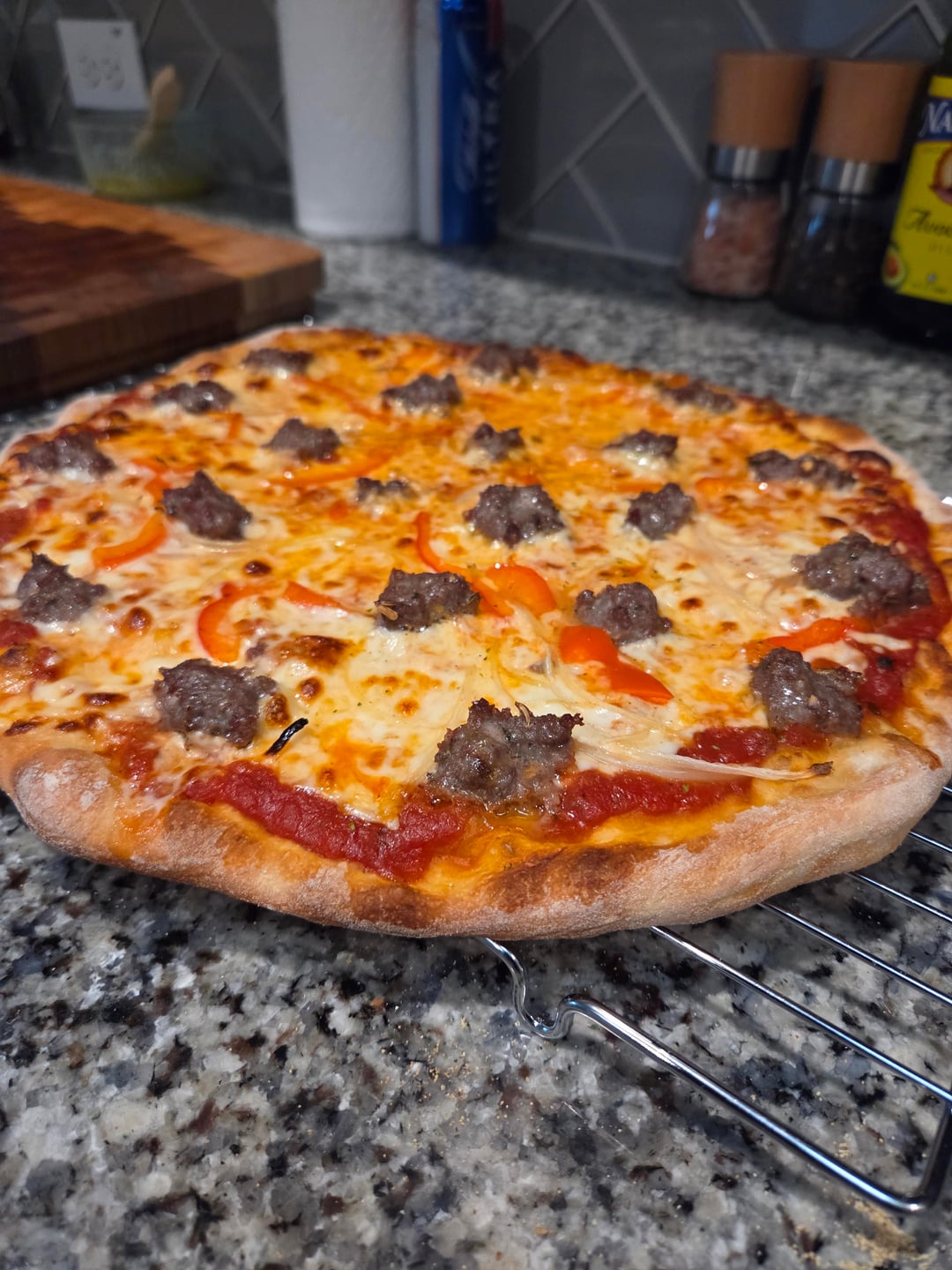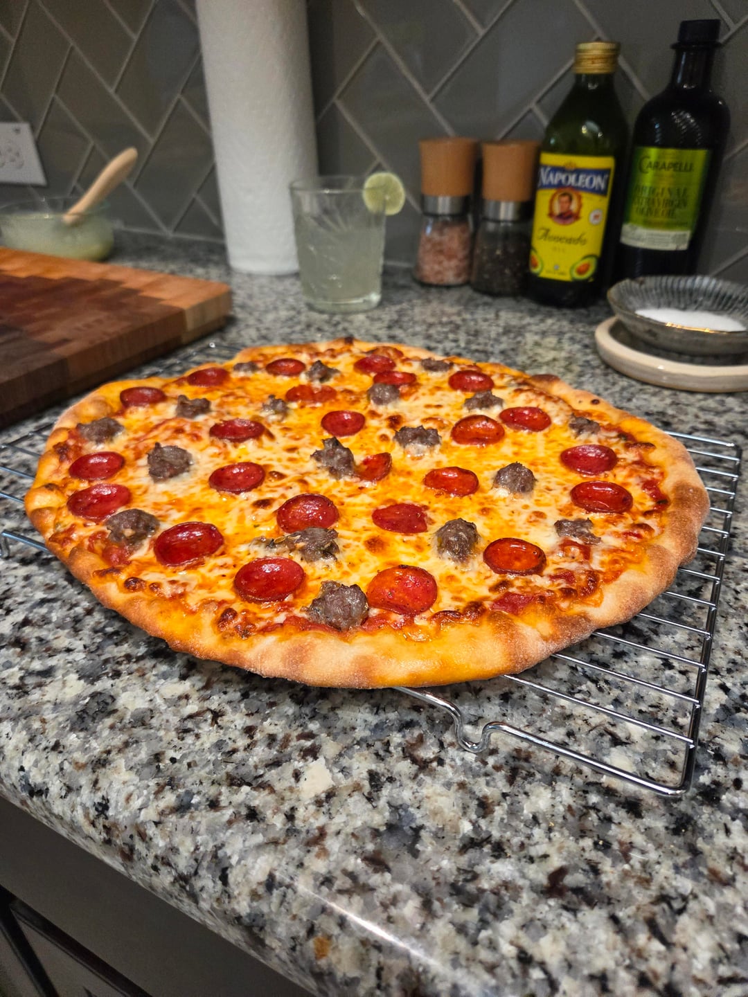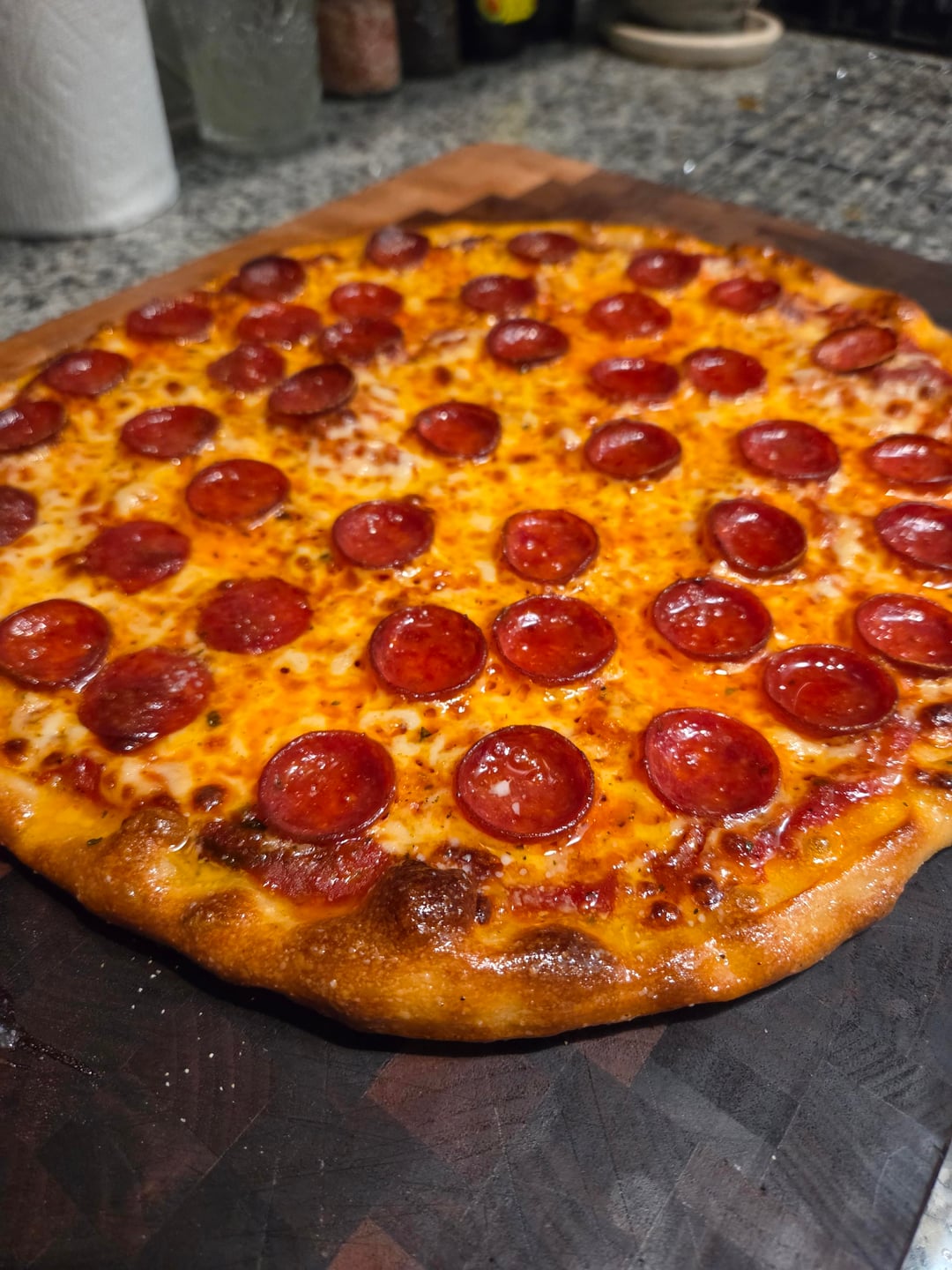 Pies came out pretty good tonight. I upped the hydration just a tad and it had a dramatic affect on proofing time.