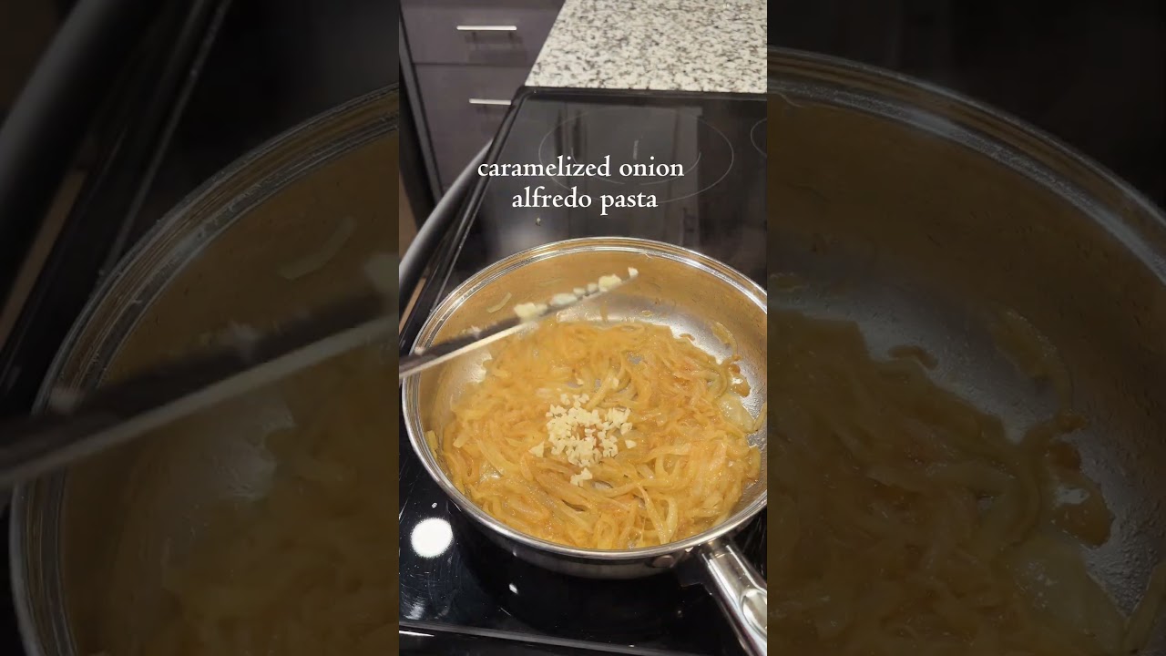My recipe for caramelized onion alfredo pasta is… Ingredients .perciatelli noodles .1 yellow onion .3 tbsp olive oil .2 tbsp garlic .1 cup heavy cream .1/4 cup butter .salt & pepper to taste .italian seasoning & parsley .splash of pasta water