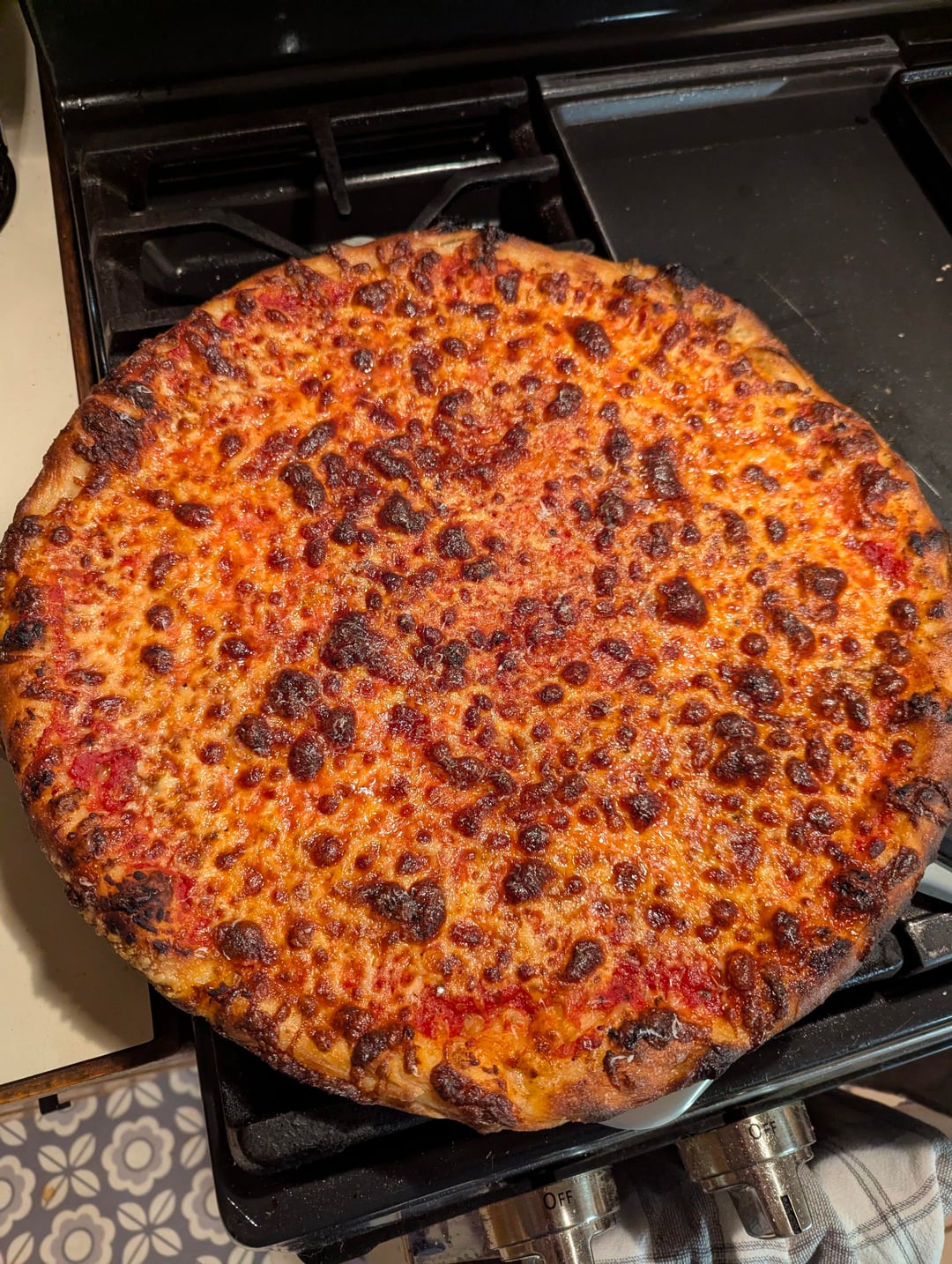 I've made it as a Jersey bar pie, Detroit Style, Cast-Iron thick crust, but I think that this version was my favorite. 68% hydration, 48hr bulk ferment and 24hr ball ferment. 500g dough balls for 16" pizzas.