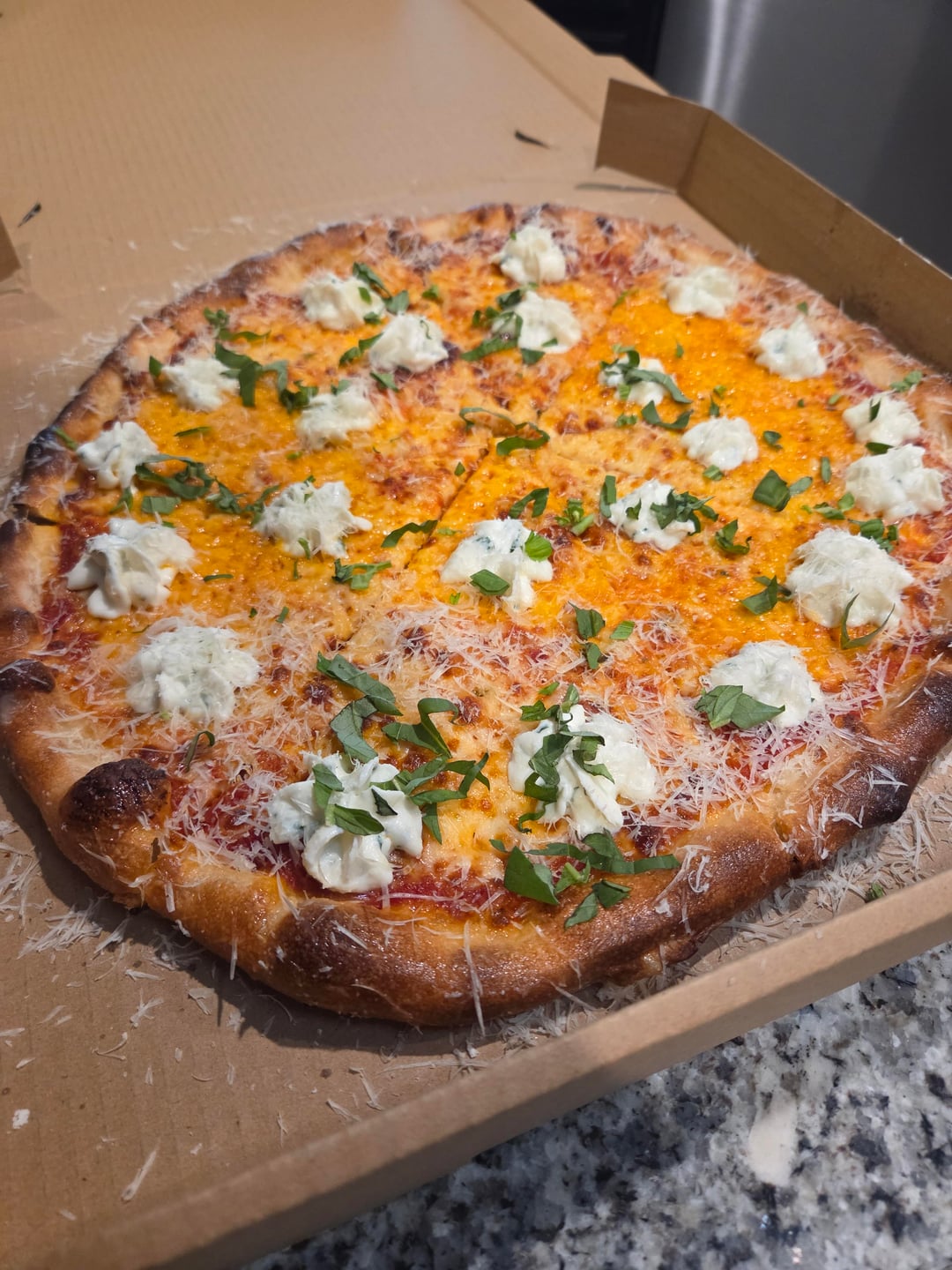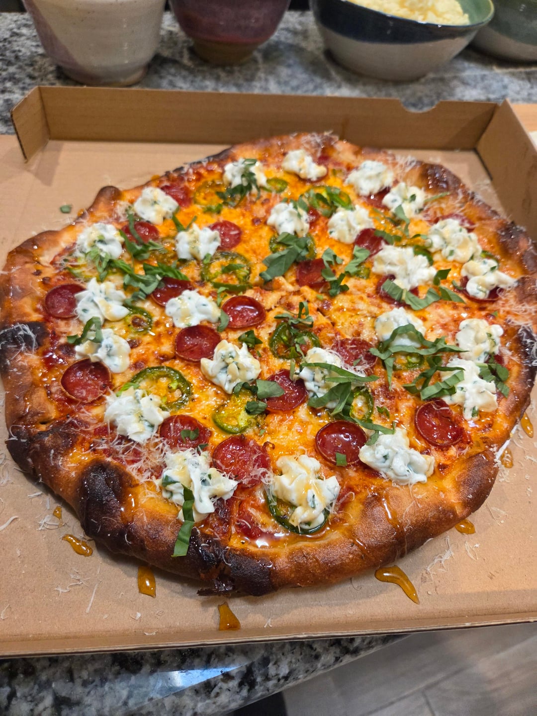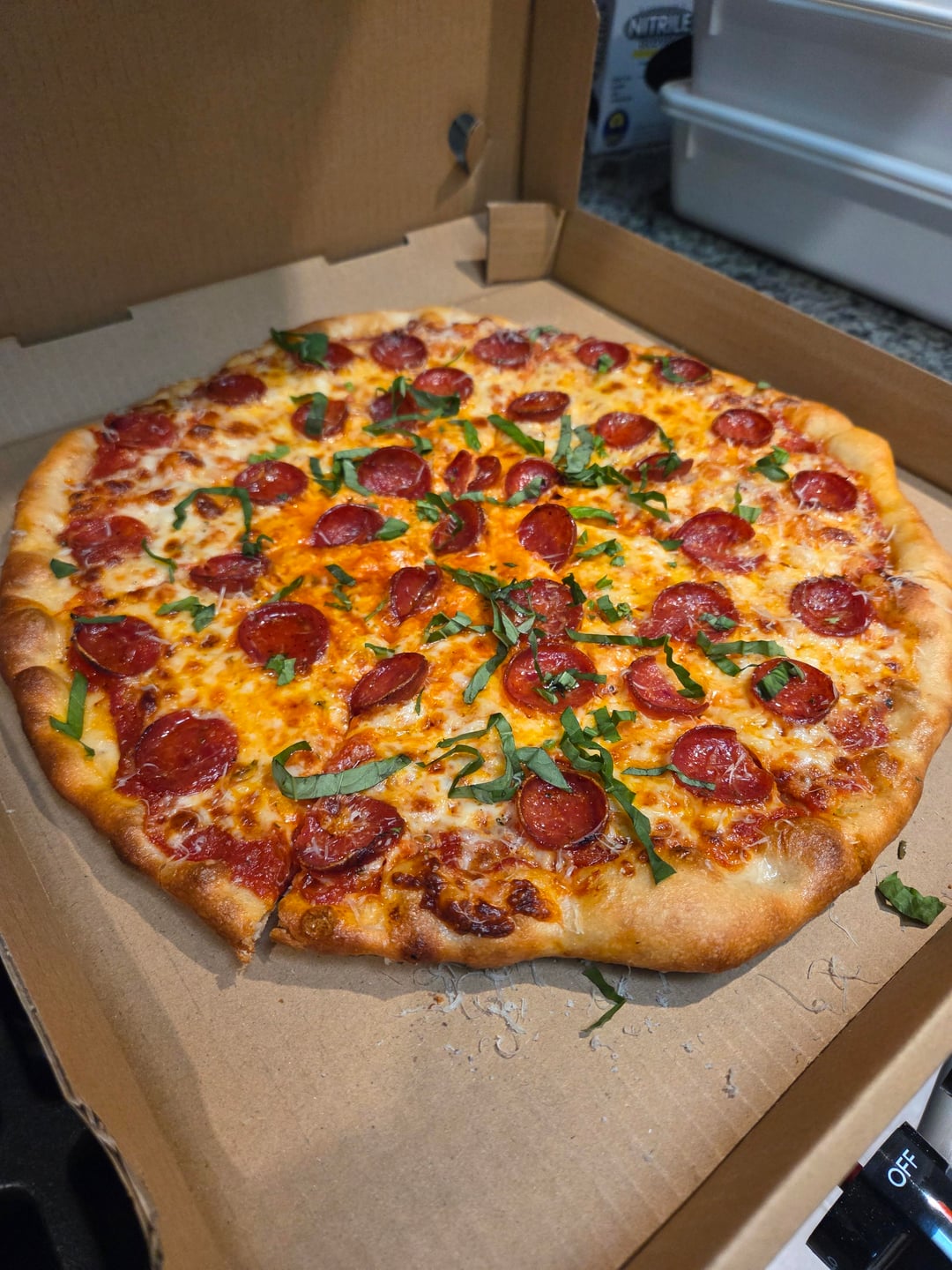 Another fun night making pizzas for the hood! The requests came in strong today so I broke my rules and made 12 pies. I feel like I'm close to being where I want to be on stretching this dough. I just needed to stretch them a touch more to get the texture and bake I was looking for. The last 4 or so pies were dialed. Really nice crunch, firm undercarriage, holds up well in the box too. Pretty stoked on that.