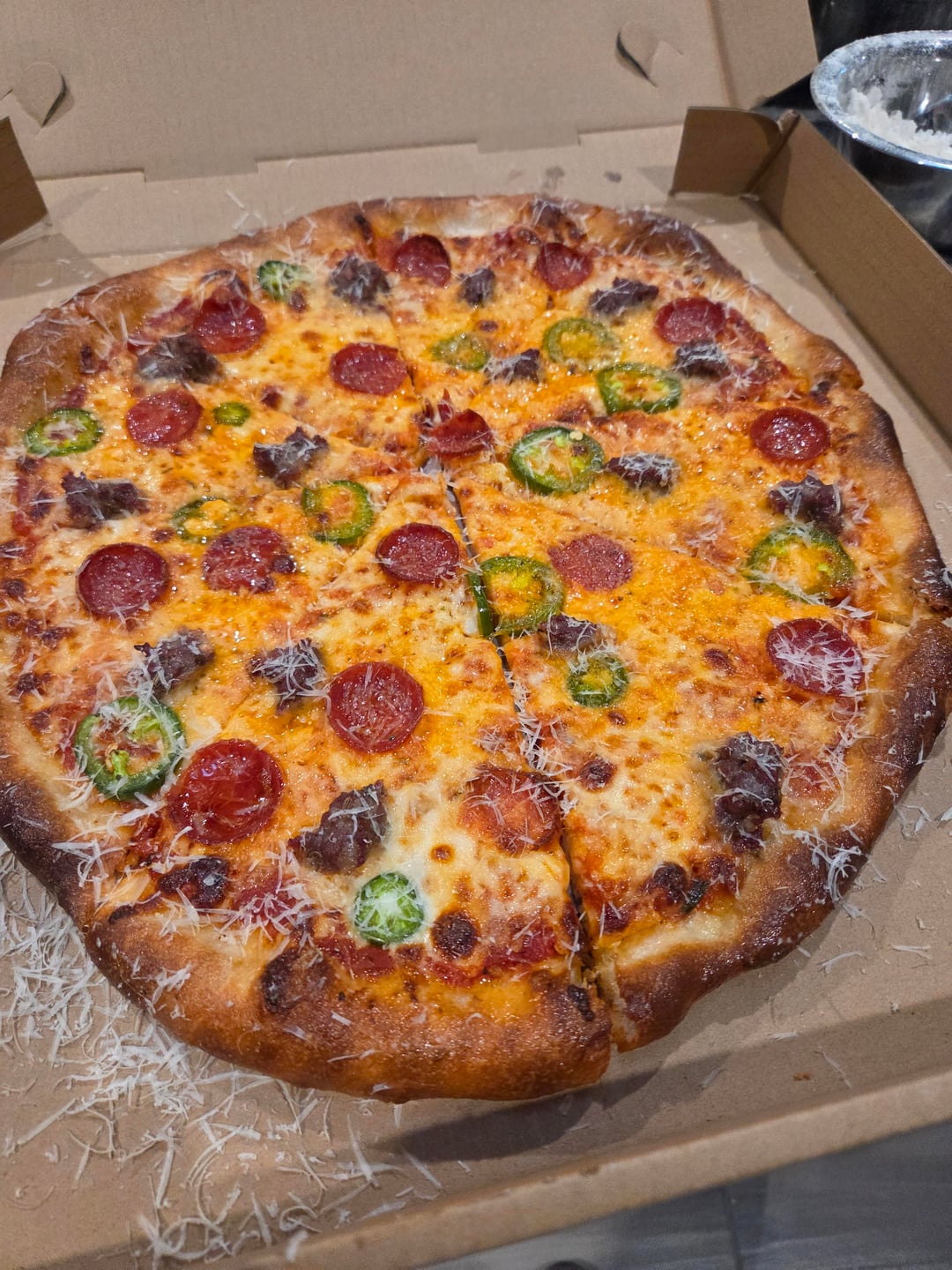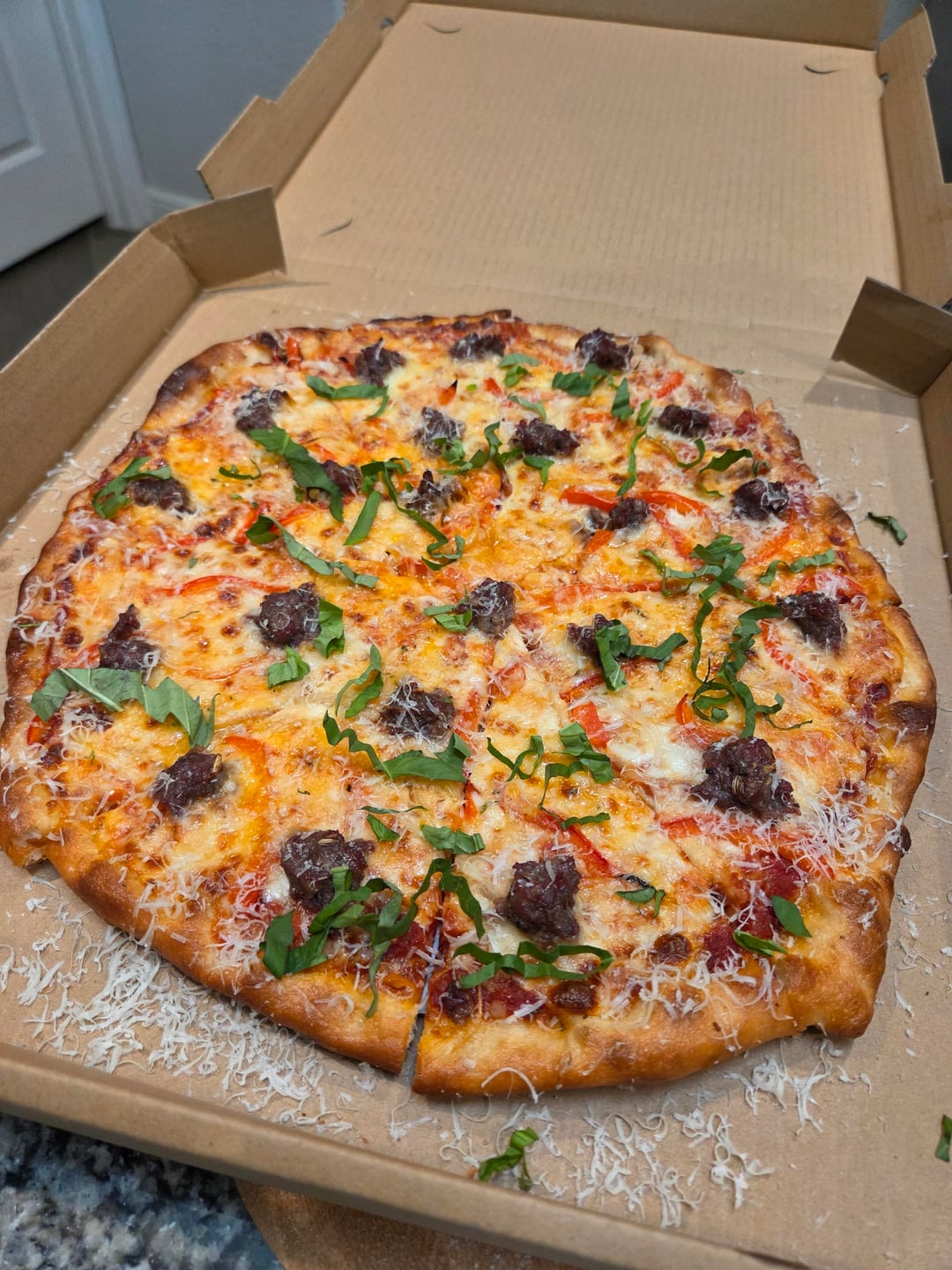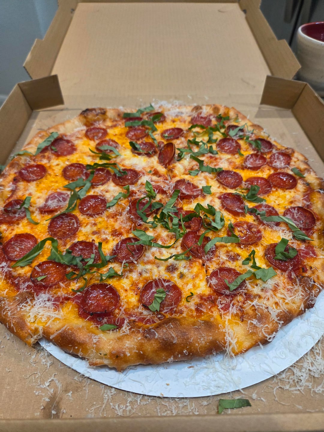 Another fun night making pizzas for the hood! The requests came in strong today so I broke my rules and made 12 pies. I feel like I'm close to being where I want to be on stretching this dough. I just needed to stretch them a touch more to get the texture and bake I was looking for. The last 4 or so pies were dialed. Really nice crunch, firm undercarriage, holds up well in the box too. Pretty stoked on that.