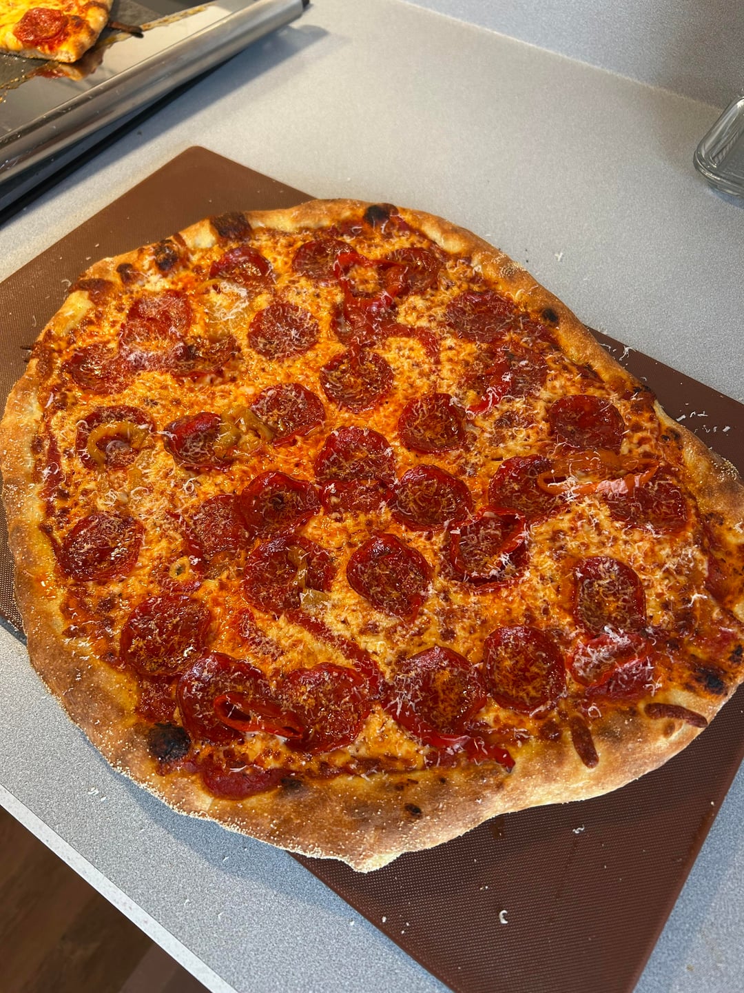 This is a very sticky dough, I have to use so much semolina. I can’t put anything on the dough before getting it on the peel because it’s like dealing with lava. It takes me roughly 90 seconds to put down sauce, cheese, pep and banana peppers and impossible to launch on the steel at 550F. I did one with just sauce and tried to bring it on the peel and it split the dough.