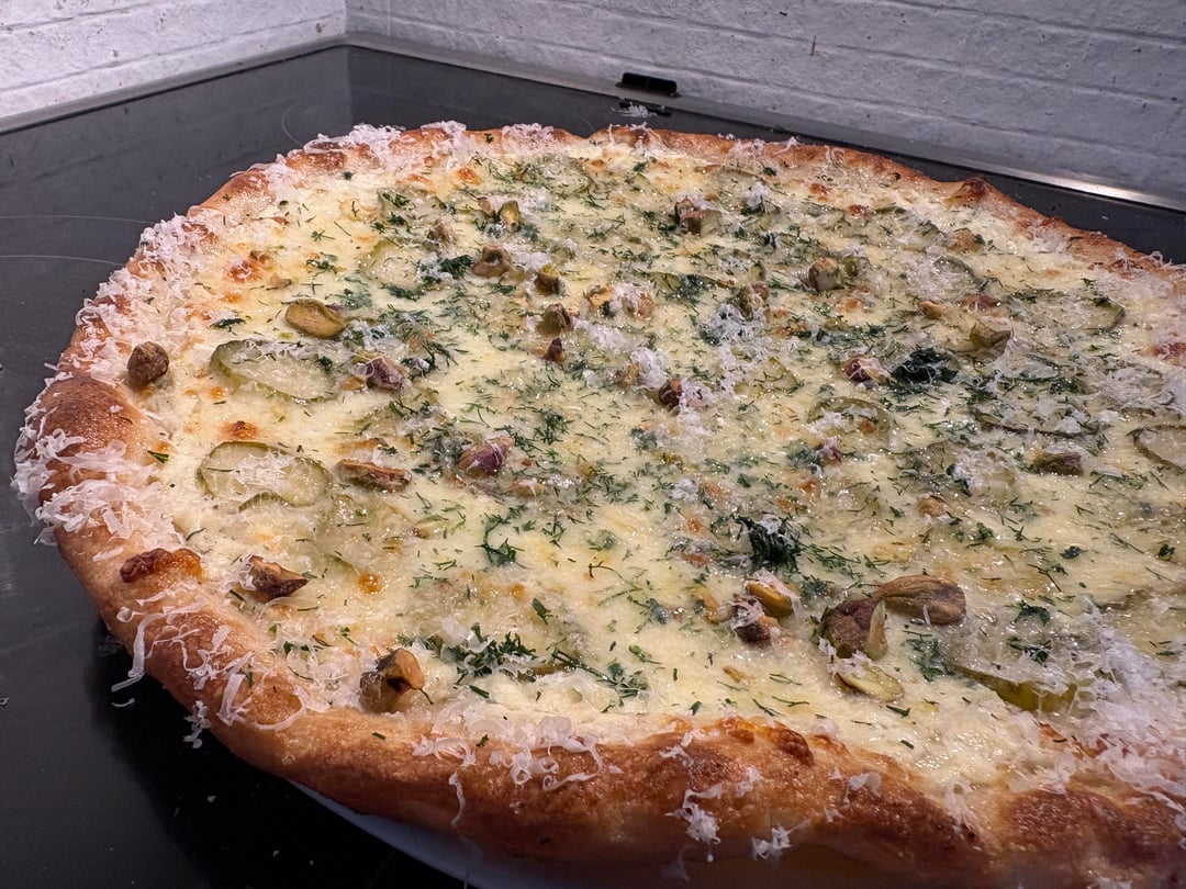 -For the third one I wanted to try the dill-pickle pizza I've been seeing, with the addition of salt roasted pistachios.