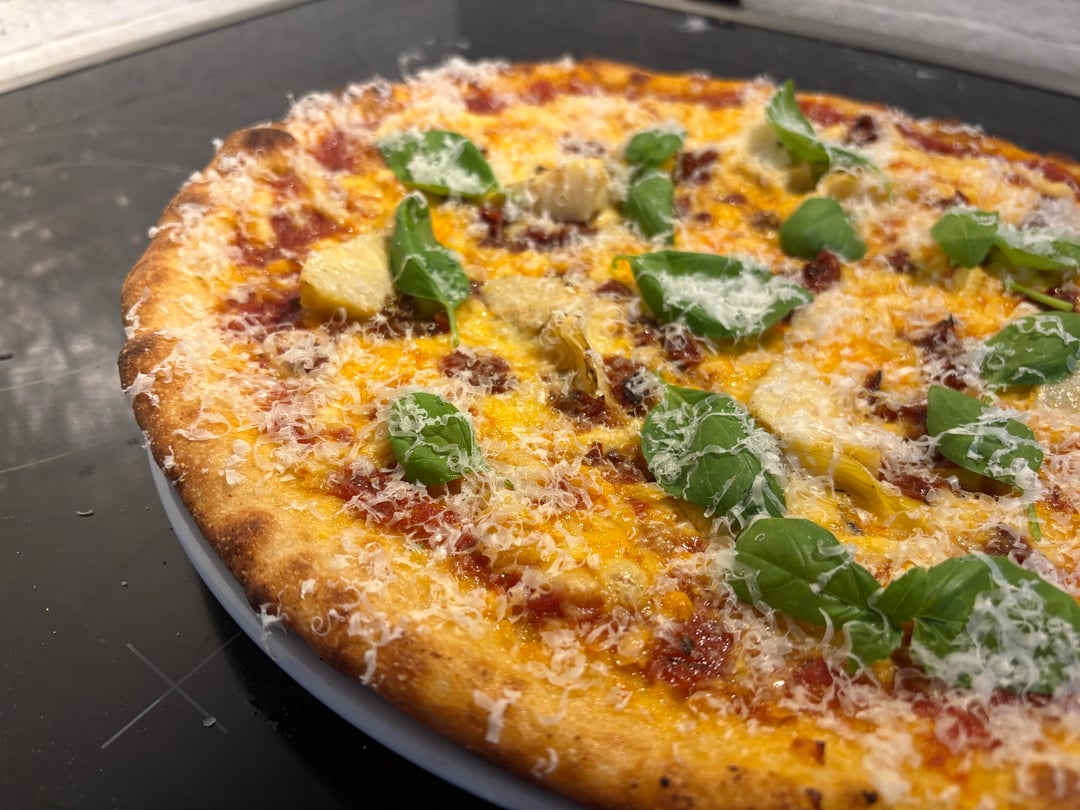 -Second one is topped with sun-dried tomatoes and artichoke.