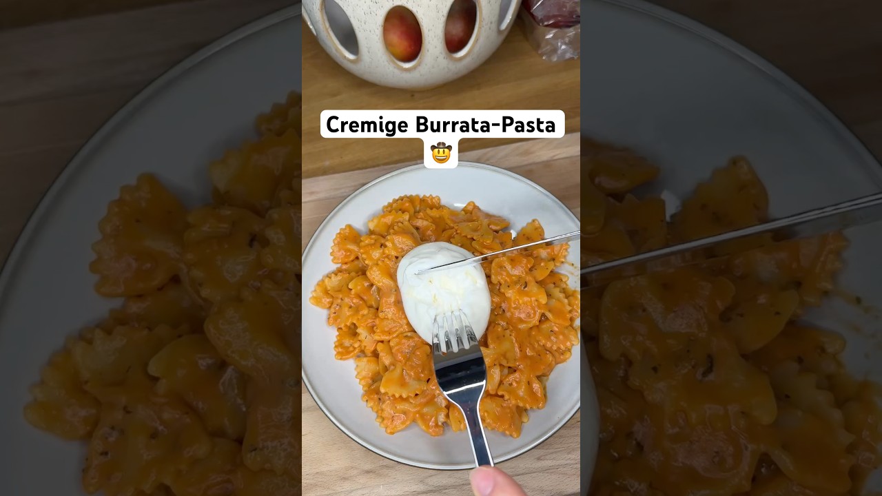 @NiCeRezepte 5 days ago Nährwerte:706 kcal28 g Protein103 g Kohlenhydrate18,7 g FettZutaten: • 130 g Pasta • 200 g passierte Tomaten • 40 ml Cremefine (7%) • 1 Schalotte • 1 Knoblauchzehe • 10 g Parmesan • 50 g BurrataGewürze: • Salz • Pfeffer • Oregano • Basilikum • Paprikapulver • optional: ChiliZubereitung:Schalotte und Knoblauch anbraten.Mit Tomaten ablöschen und Cremefine einrühren.Würzen und Parmesan unterrühren.Pasta dazugeben und vermengen.Burrata oben drauf und leicht aufreißen.