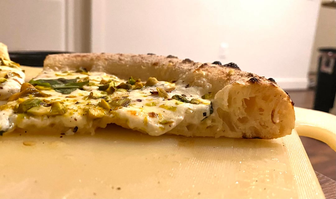 Baked at 430 °C (810 °F) for 95 seconds. 62% hydration, caputo pizzeria.