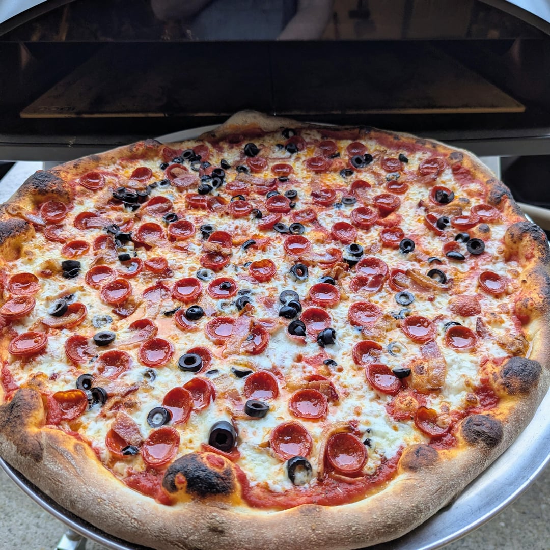 20″ Pepperoni, Bacon and Oliveby iheartbicycles outdoor ovenpizza 3 Comments dewmzdeigh 23 hours ago Got some left to share? bigboxes1 23 hours ago Looks good collarboner1 23 hours ago Damn, save a slice for meWrite A CommentYou must be logged in to post a comment.