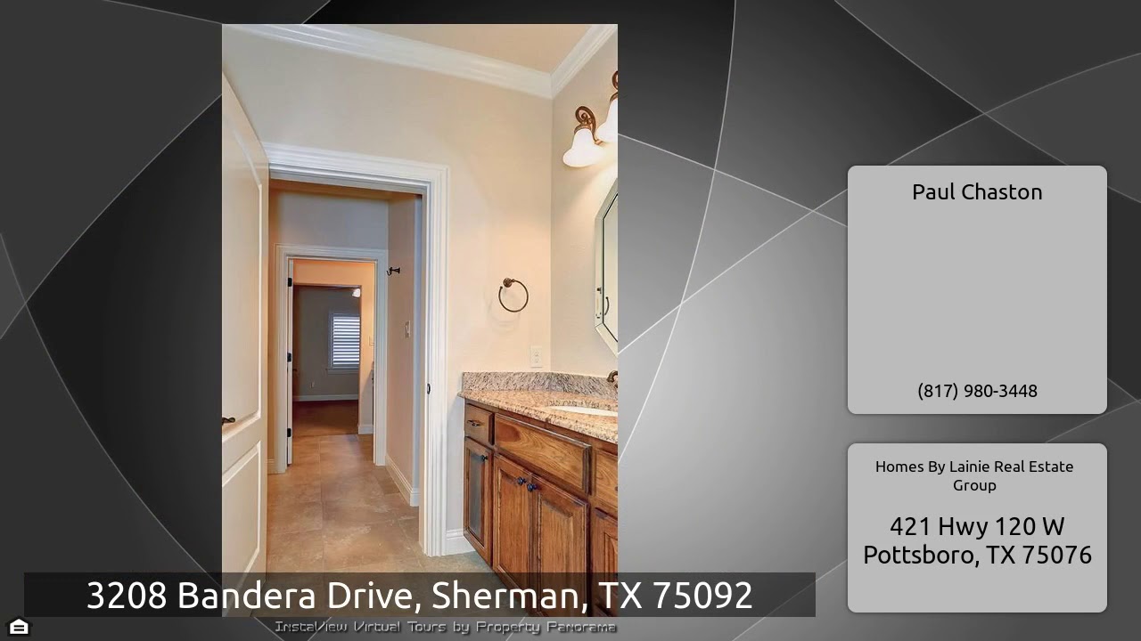 The Virtual Tour for the property at 3208 Bandera Drive, Sherman, TX 75092 listed for $349,000: Other homes for sale by Paul Chaston of Homes By Lainie Real Estate Group: Ohanlon Ranch custom home with excellent open floor plan, stunning decorator touches & plantation shutters throughout. Hand-scraped wood floors & travertine. Hand-built pecan custom cabinets will amaze you! Large dining room leads into family room with Italian marble FP & view of private backyard & entertaining size covered patio. Huge gourmet kitchen, 5 burner gas stove, pot filler, granite island, and breakfast area …