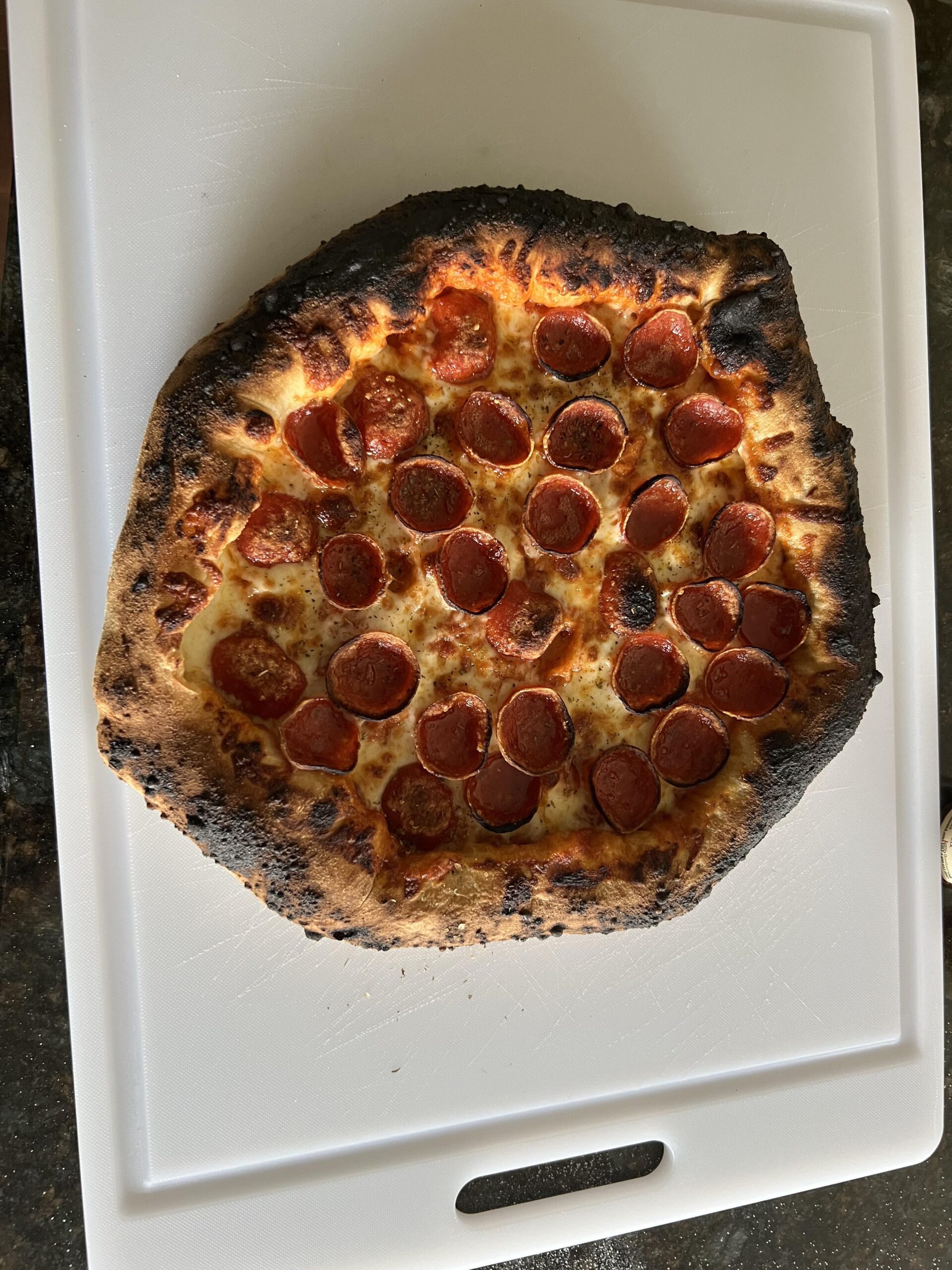 Now that I’ve found a place to share the pizza journey I’m on I figured I would try to post all the different variations I’ve tried. This was my attempt at stuffed crust pizza , it overall worked well, I just did not account for the difference In temperature the raised crust would have so let it get a little too burnt on the top.