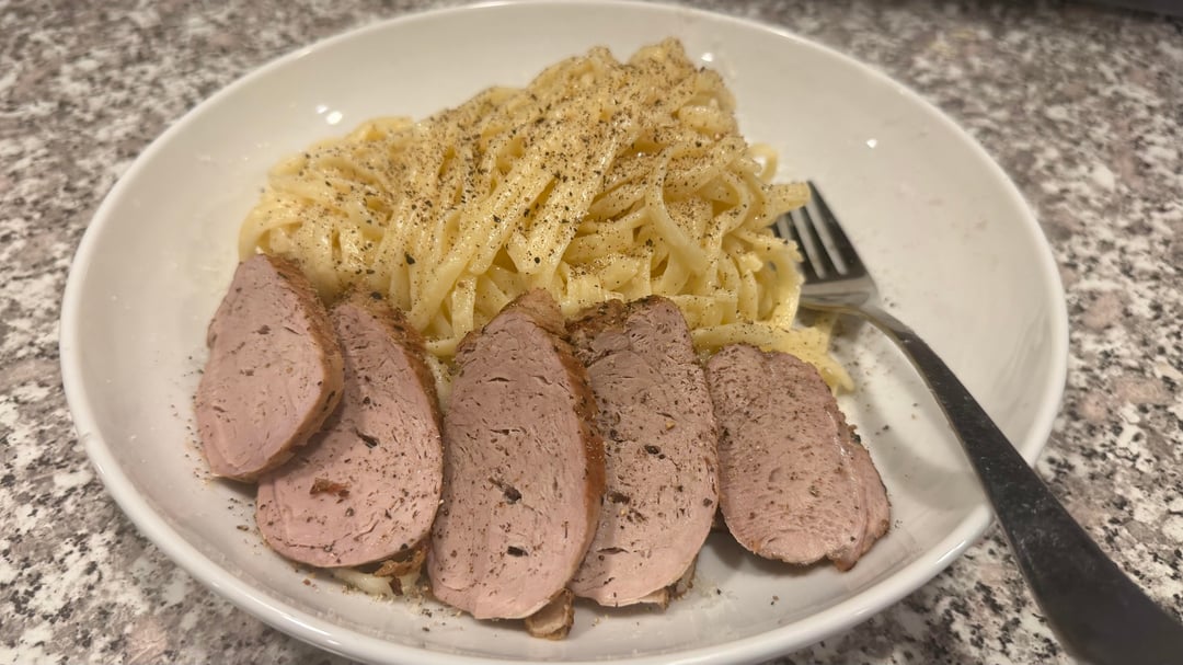 Garlic peppercorn pork tenderloin with linguine Alfredo by ace72ace Homemade DishPastaWrite A CommentYou must be logged in to post a comment.