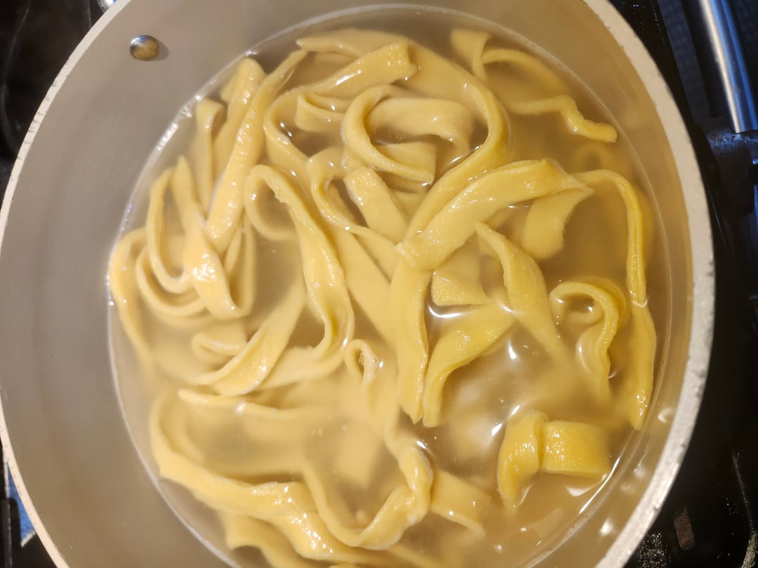 Everything was perfect when i made the dough (except for my hands getting super duper sticky) up until it was time to cut the dough into fettuccine. I folded the dough 4 times to just make it faster to cut, but when i put it in the water i only unfolded it THREE times. I accidentally made the worlds thickest fettuccine. And i didnt make enough home made sauce. And i added too much flour when cutting the dough… BUT it was fun and i plan to try again :D. Also any tips on improving my cutting skills?
