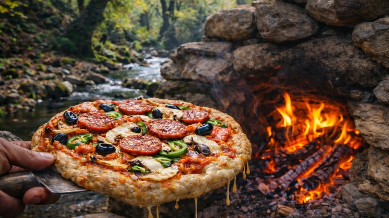 #OutdoorCooking #WoodFiredPizza #NatureCooking #CampfireFood