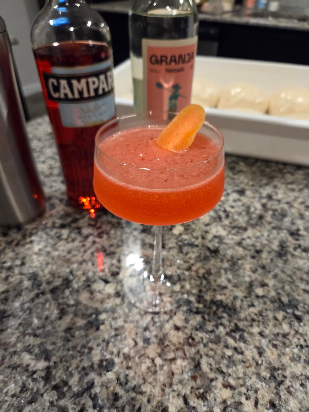 Made myself a Mezcal Mosquito for a night cap. 1 oz mezcal, 1 oz campari, 1 oz lemon juice, 1 oz ginger syrup. One of my goto fave cocktails at home.