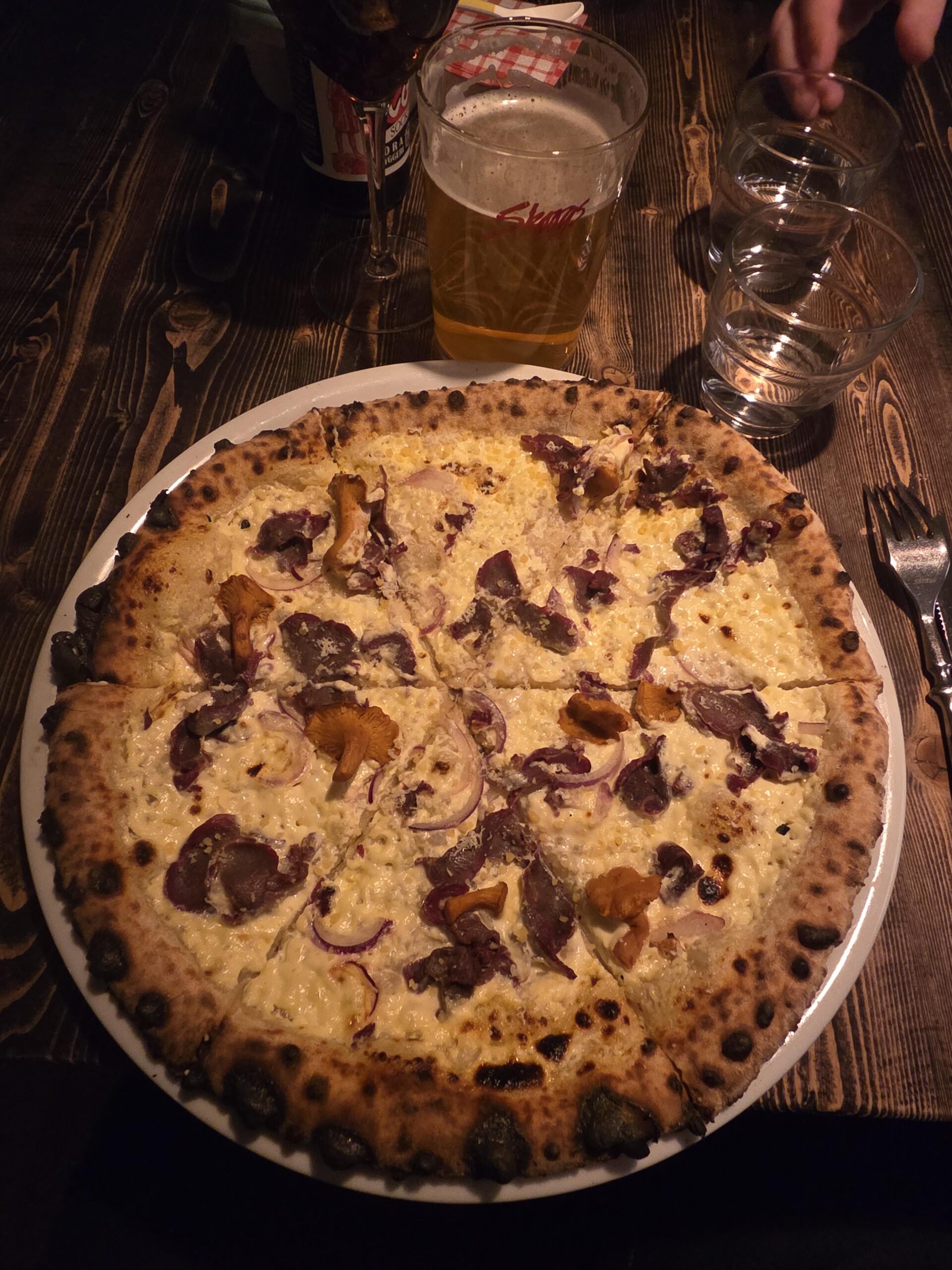 The scandinavian beauty.Pizza with reindeer meat, chanterelle mushrooms and swedish Västerbotten cheese. One of the best pizzas I’ve ever had. by Greedy_Sale_2838 indoor pizza ovenpizza 1 Comment Prairie-Peppers 2 days ago Looks great, but why’d they cut it all stupid?Write A CommentYou must be logged in to post a comment.