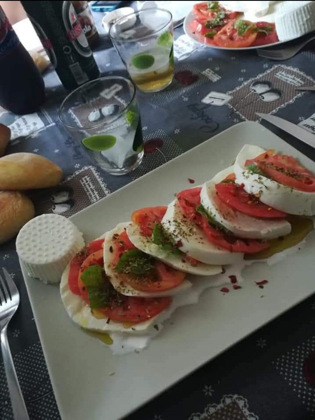 Ma che ne sanno gli stranieri cosa è il cibo buono! Pomodoro mozzarella basilico olio e sale. (E una spola di pane 😋)
