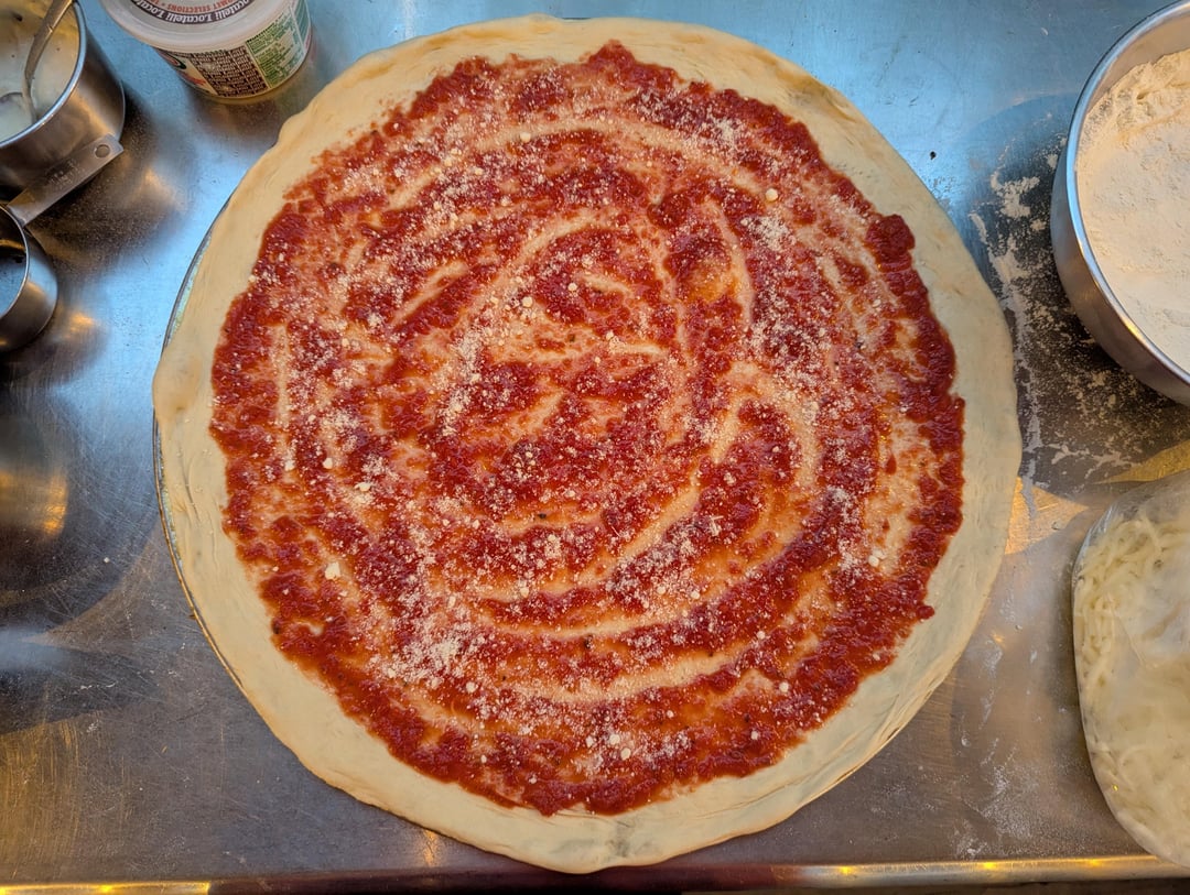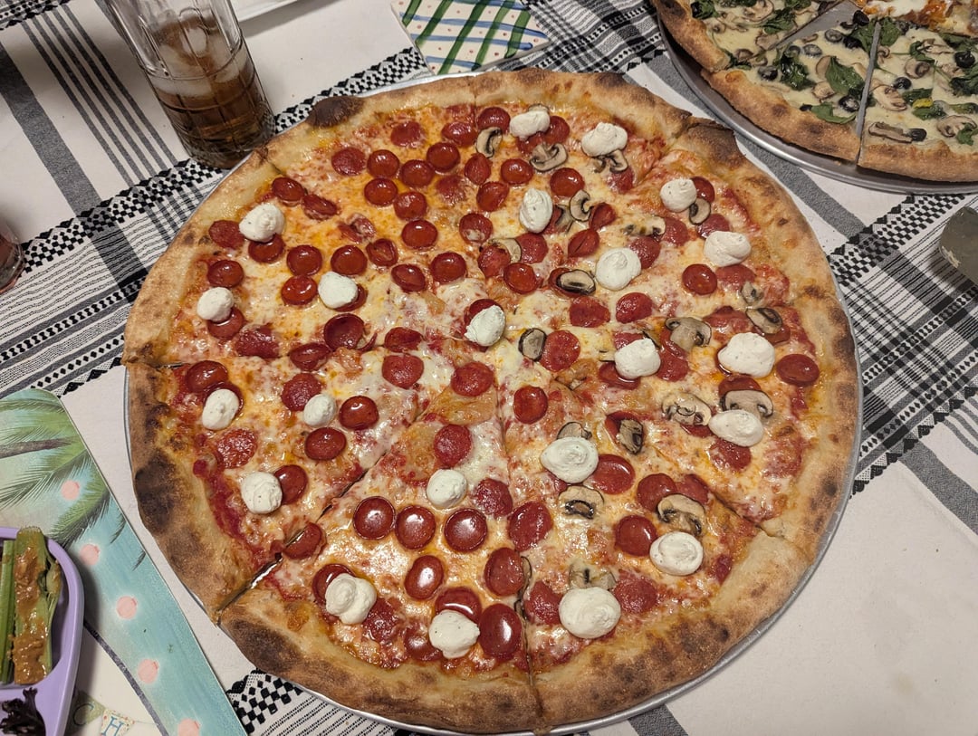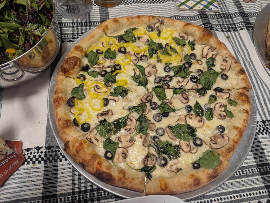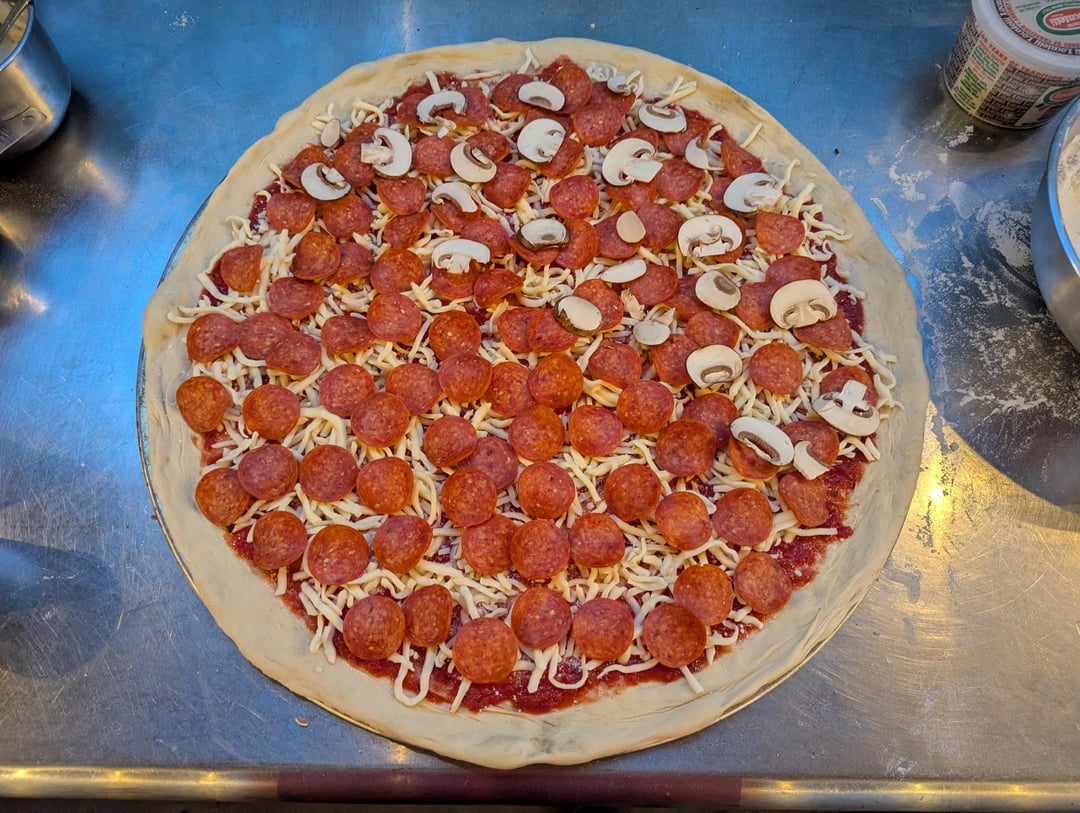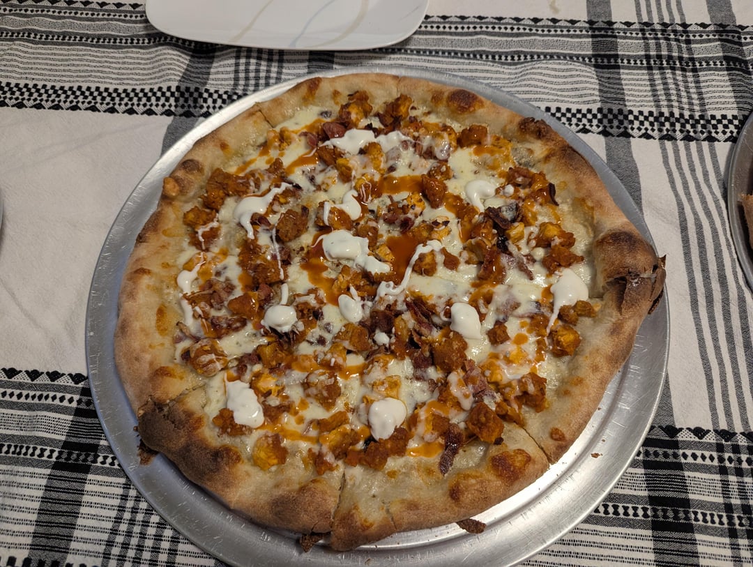Made some pizzas last night, one 20" pepperoni & half mushroom with dollops of ricotta added post bake, one 15" veggie with a garlic parmesan cream sauce for the base, and one 14" buffalo chicken. All were baked in the Ooni Koda 2 Max on screens to start, then removed after 3 1/2 – 4 minutes and baked directly on the stone for another 3-4 minutes for a total bake time of 7-8 min per pizza. Haven't used the Ooni in a while, so this was fun to do again.