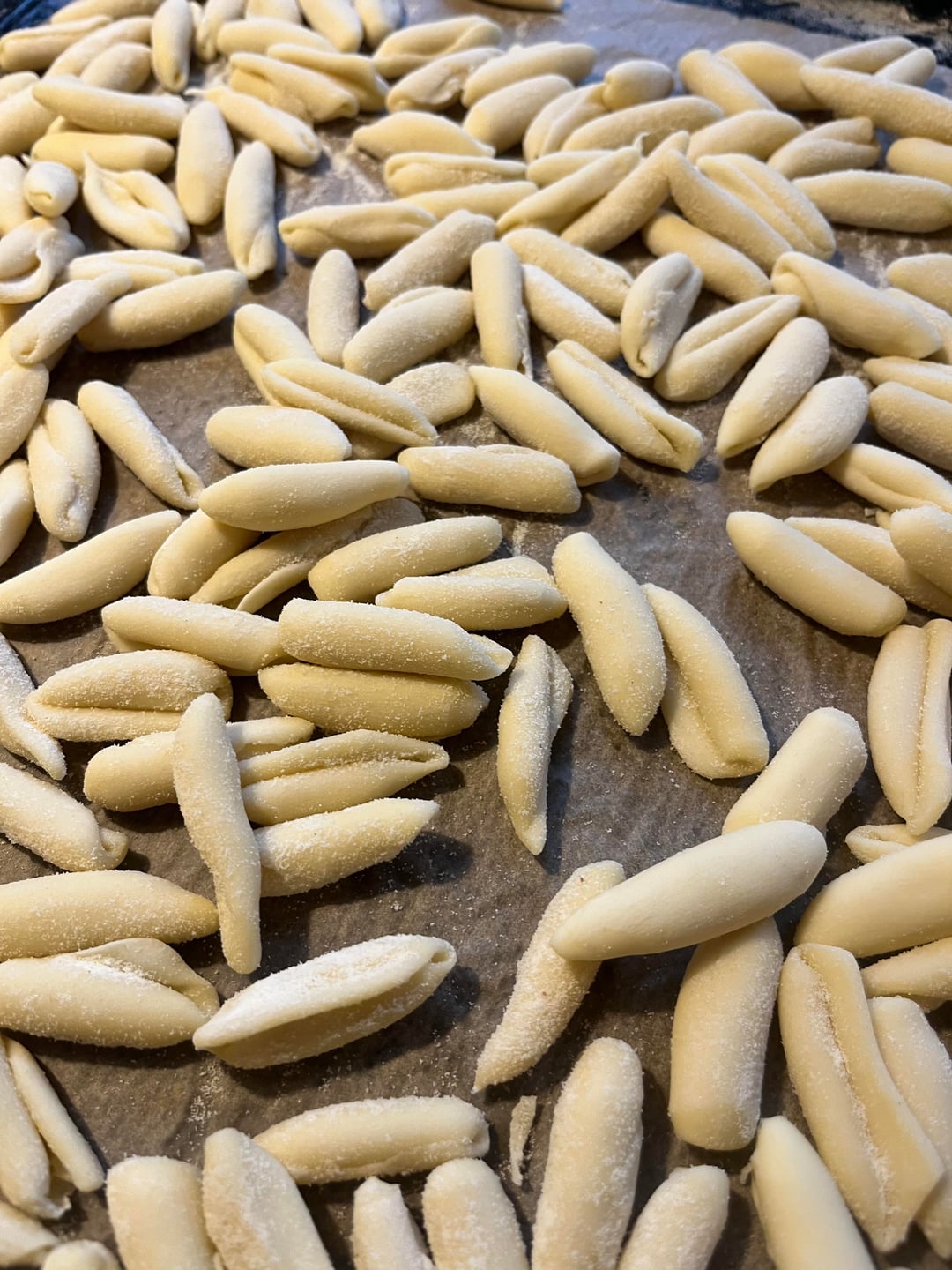 Tried a new method of shaping my cavatelli – with a knife. It was a different approach but still fun.