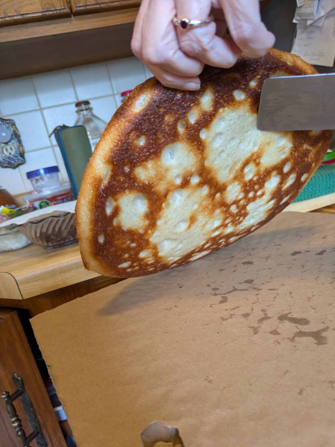 let rise in oiled pan and stretch to fit over 90 minutes.