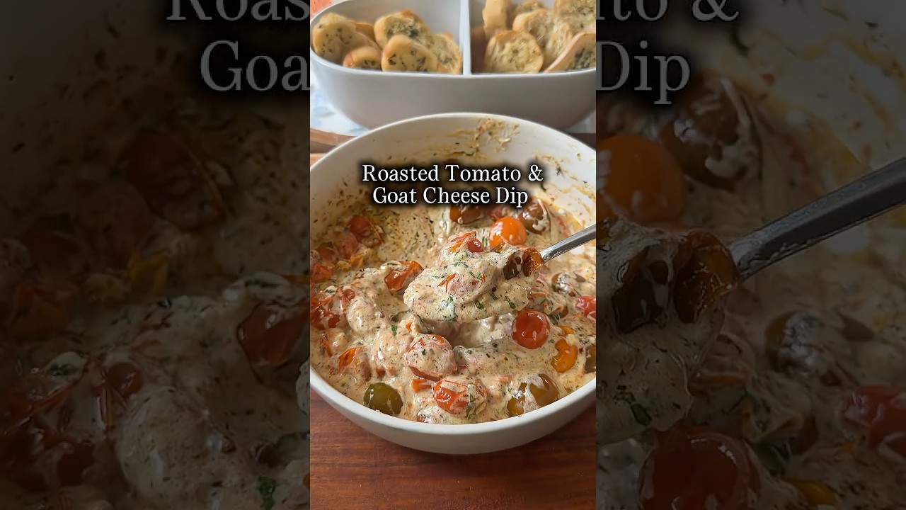 This is going to be the appetizer of summer 🍅🔥 Roasted Tomato Goat Cheese Dip (easy baked appetizer!)