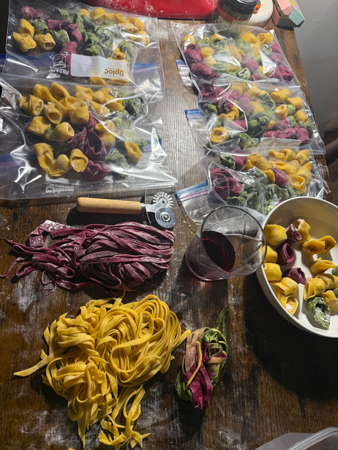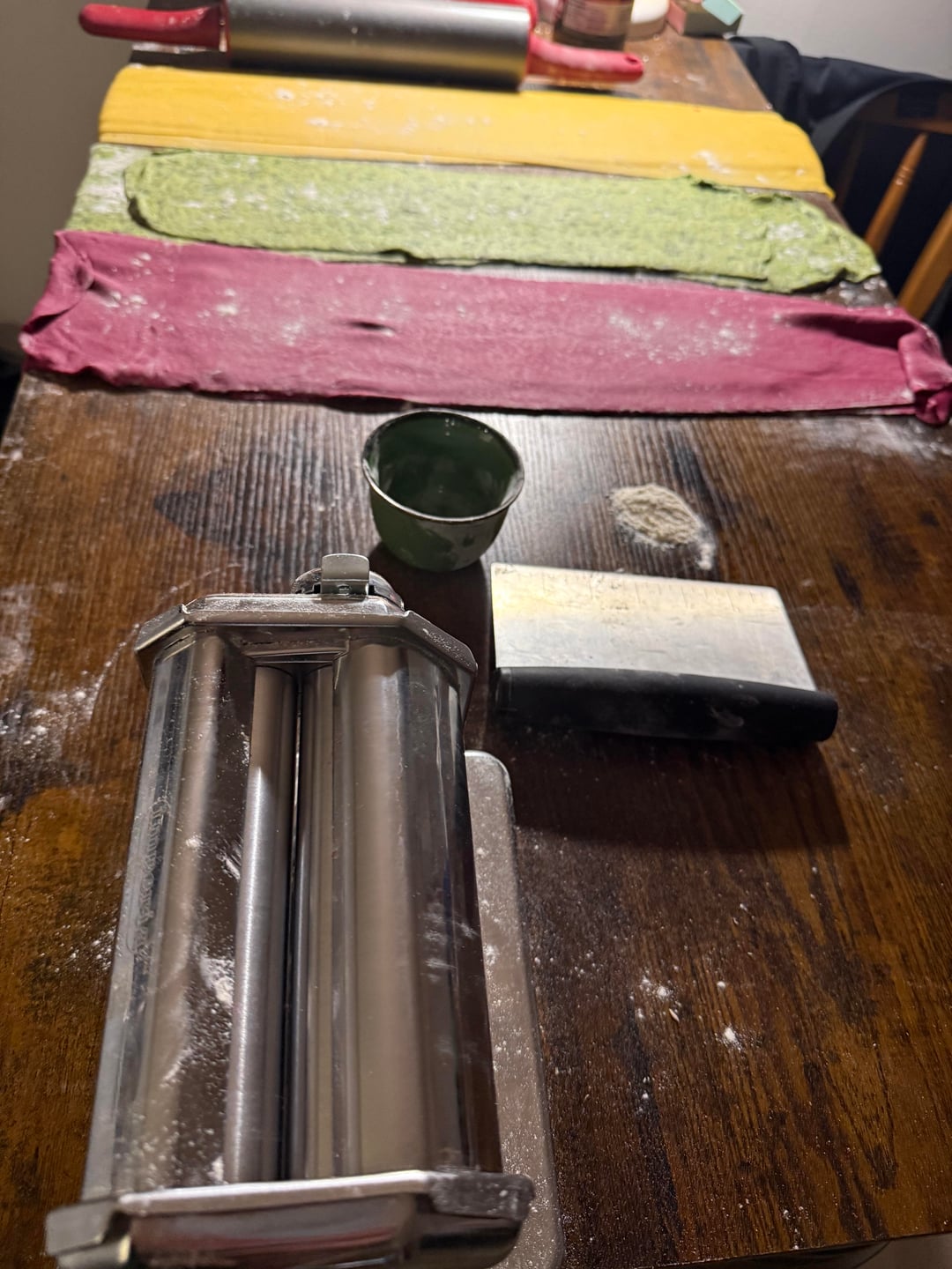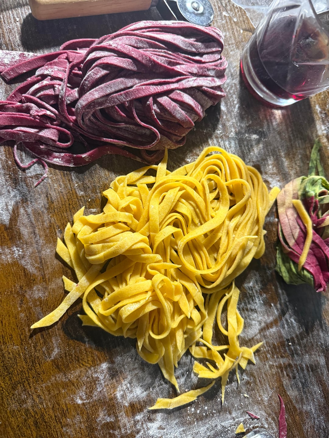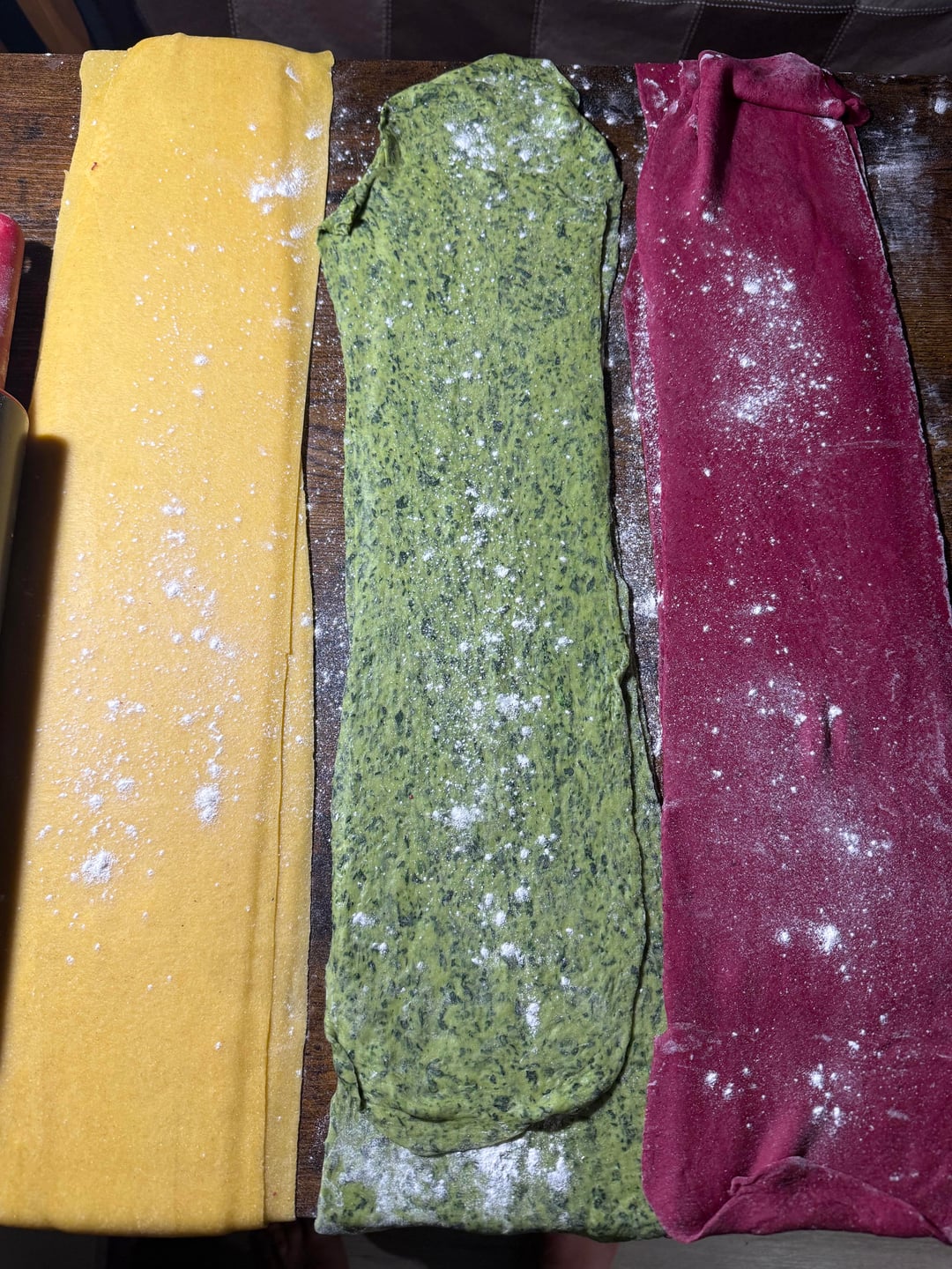 I’ve made fresh pasta a few times before but here I tried 3 new recipes; semolina and flour for the yellow one, spinach for the green one and beets for the red one!