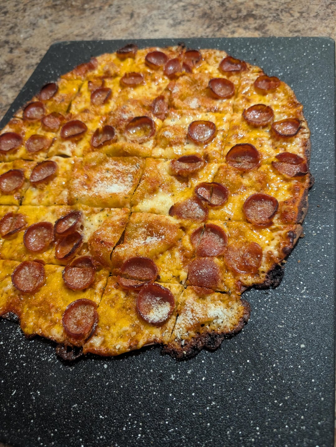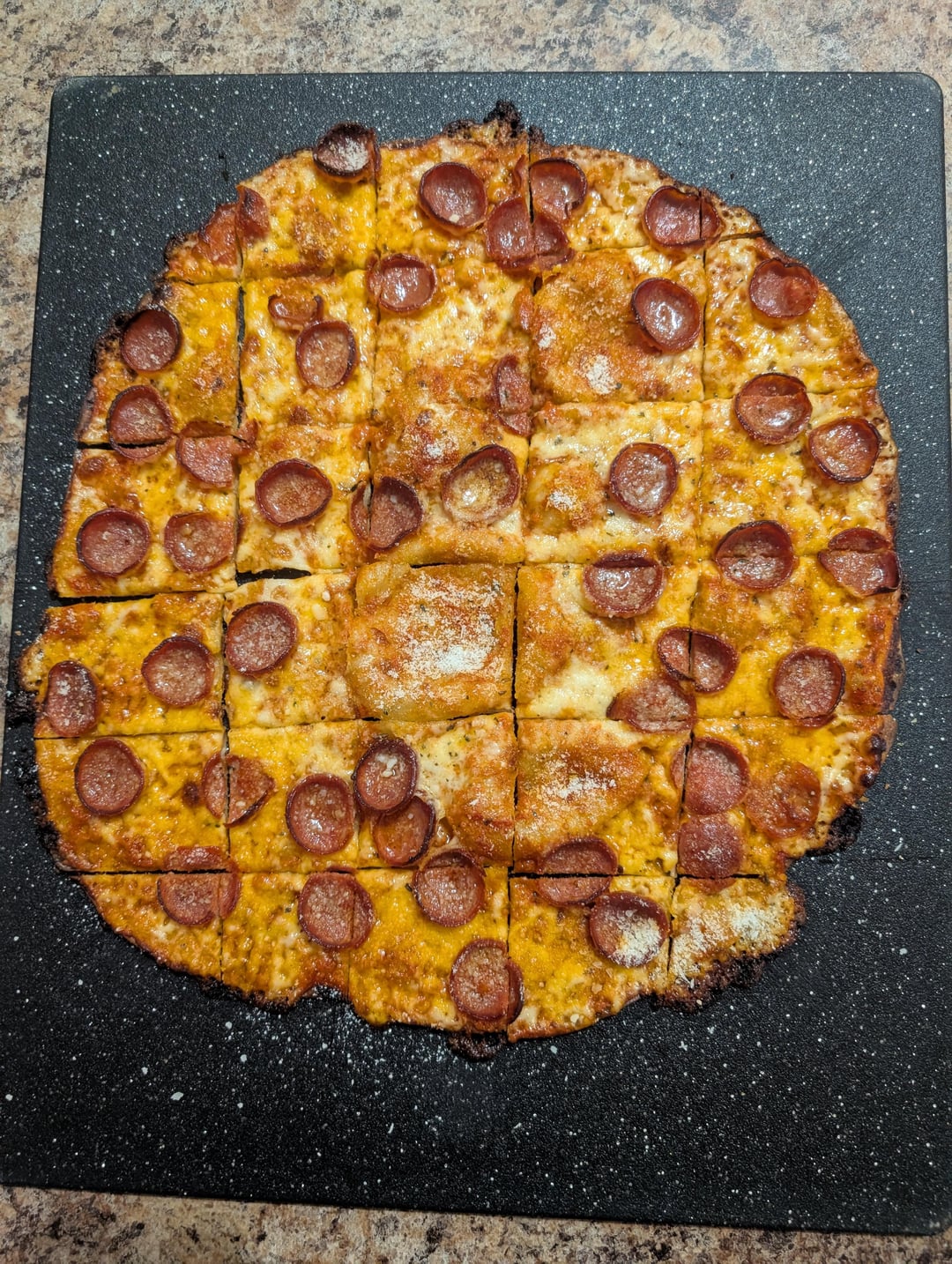 I'm a frequent poster, but always NY Style inspired for years. Finally got the itch to try my hand at a Chicago Tavern style pie. This isn't as photogenic as my NY Style ones I post, but this was incredible. It was sort of interesting the differences between both processes, mainly handling 50% hydration dough compared to 65% (which is probably a captain obvious statement). I did feel like this was slightly more work in comparison. This absolutely nailed the cracker thin but light airy crunch.