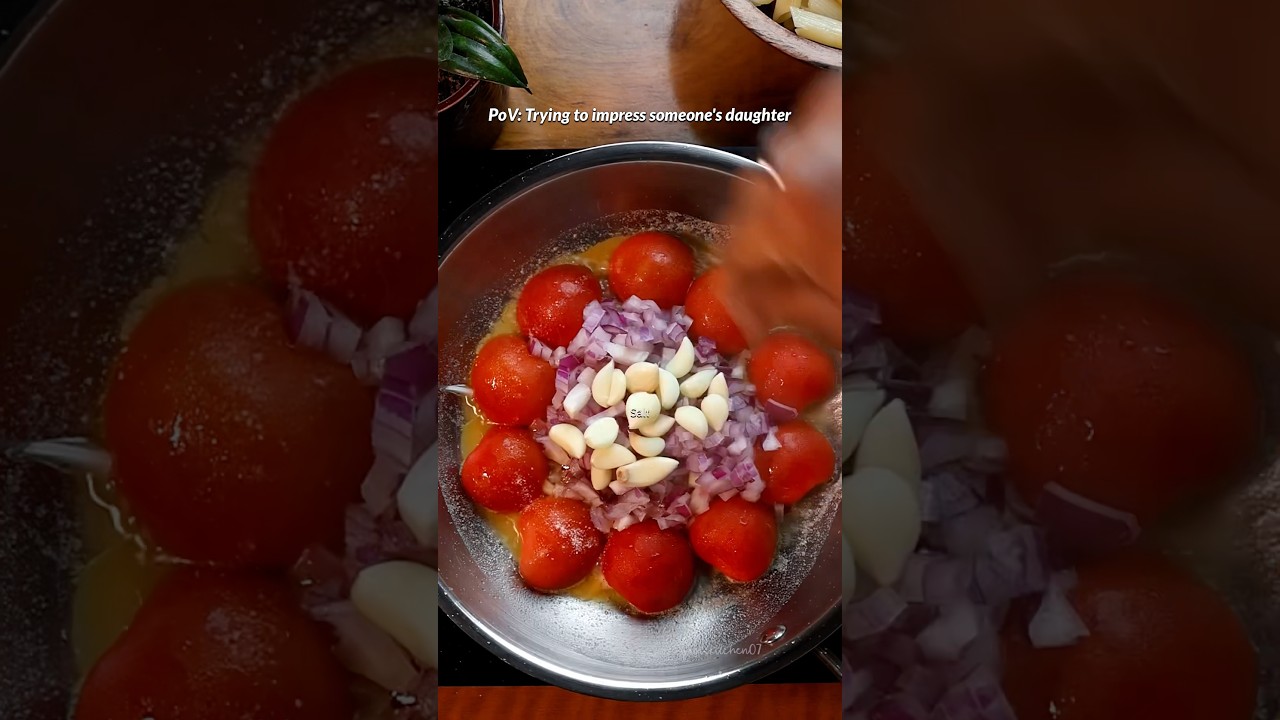1. Heat butter and oil in a pan. Add tomatoes, chopped onion, garlic, and salt. Cover and cook until everything turns soft.