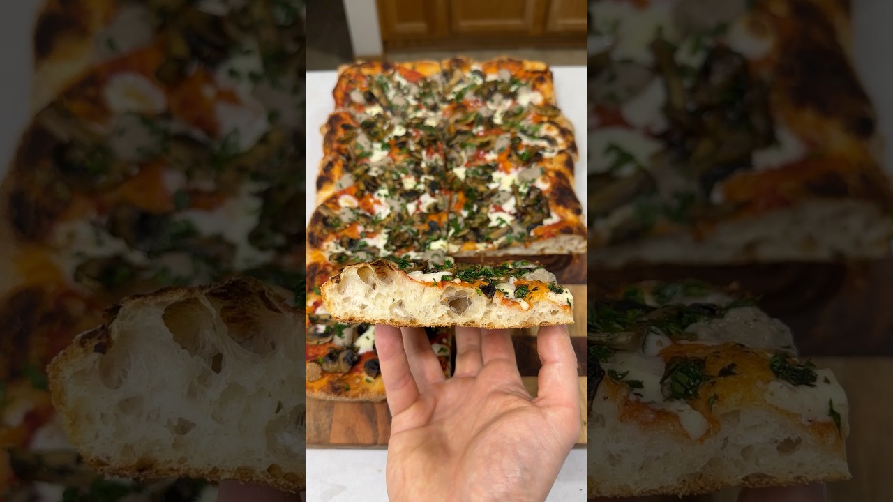 -stretch the dough like in the video, and move it to a baking sheet (mine was 12”x19.4”)