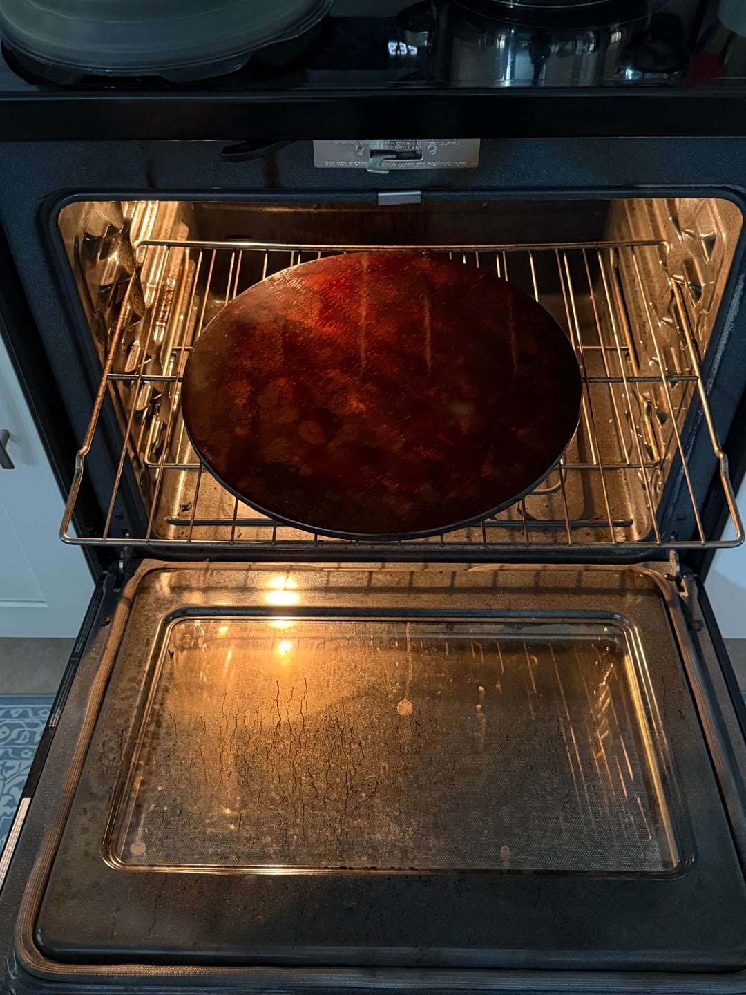 I had 16" diameter laser cut out of 3/8" A36 Hot Rolled Steel. Everything I found for sale was on 1/4" thick. Then I ground all of the mill scale off the top and beveled the edges. Next, I coated the metal with avocado oil and baked it at 500 degrees for one hour. I repeated this process three times. Looks like it will be time to cook some pizzas tomorrow.