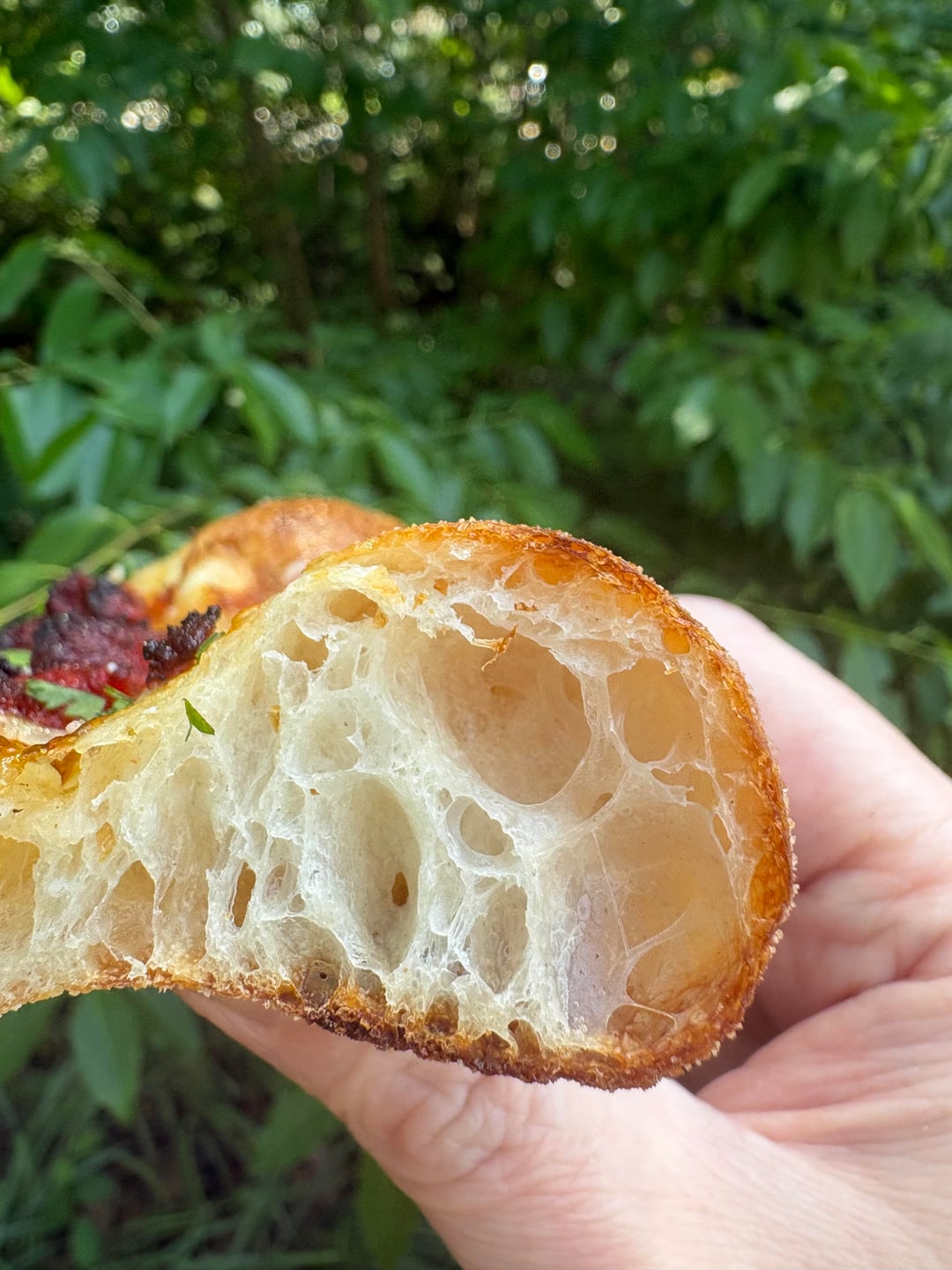 65% hydration dough (King Arthur bread flour), cold fermented 3 days. Baked in home oven on a baking steel.