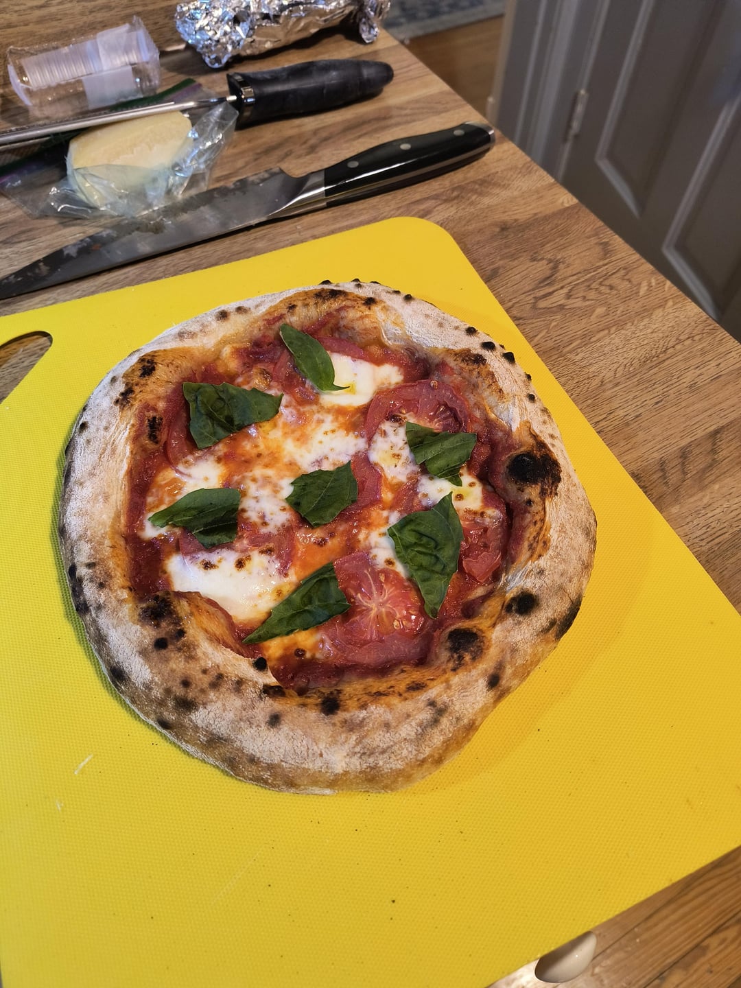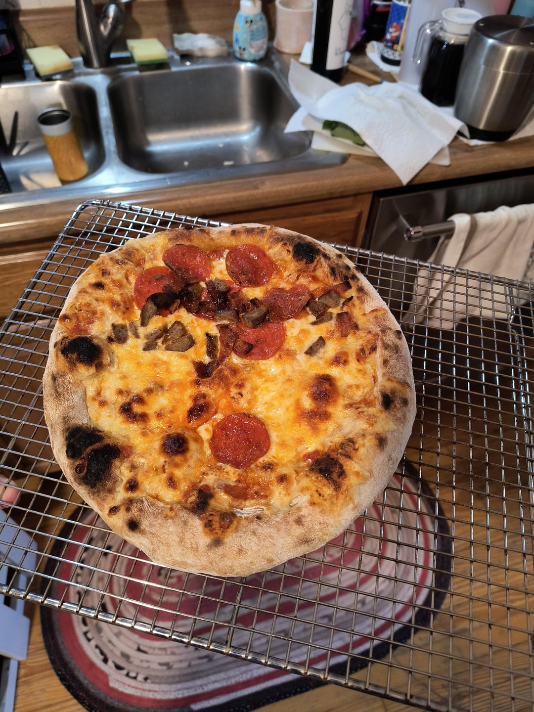 Used Julian Sisifo's Biga and Poolish recipe. Cranked the oven to 500F and then switched it to the broiler. Two and a half minutes later and I'm pretty happy with how it turned out.I welcome feedback.by hanzosbm Domestic OvenNapoletanaNeapolitanNeapolitan pizzapizzaPizza NapoletanaWrite A CommentYou must be logged in to post a comment.