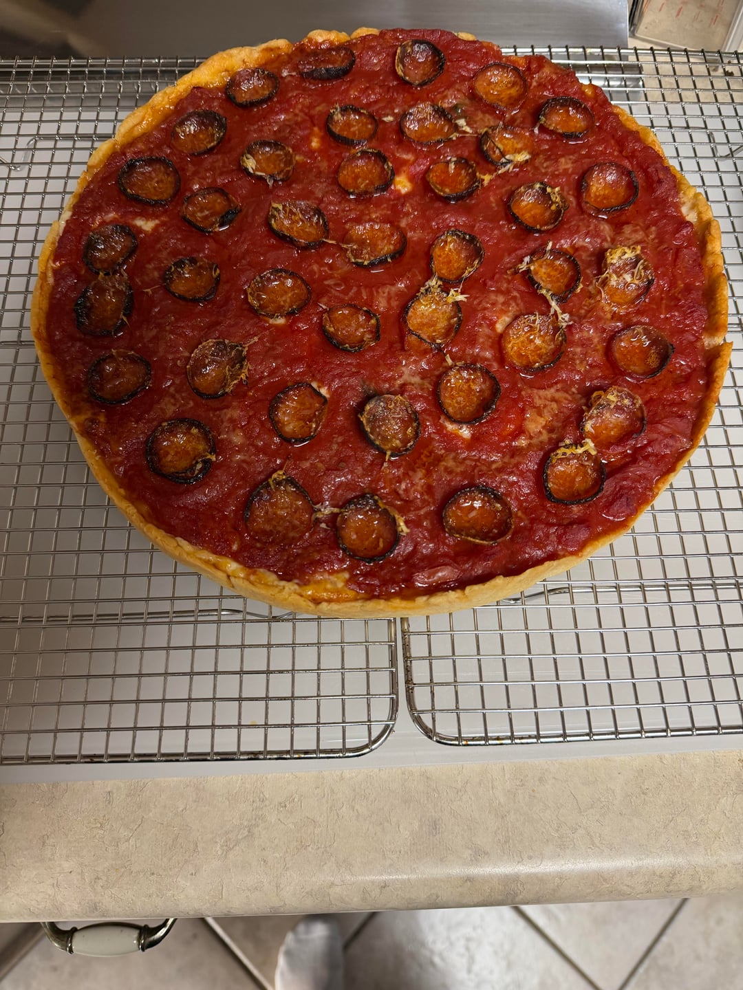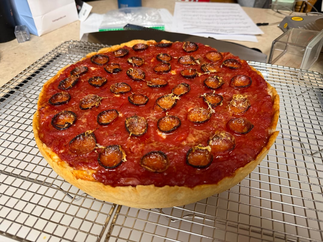 Baked at 450° for 35 mins on a pizza steel on the second from bottom rack.