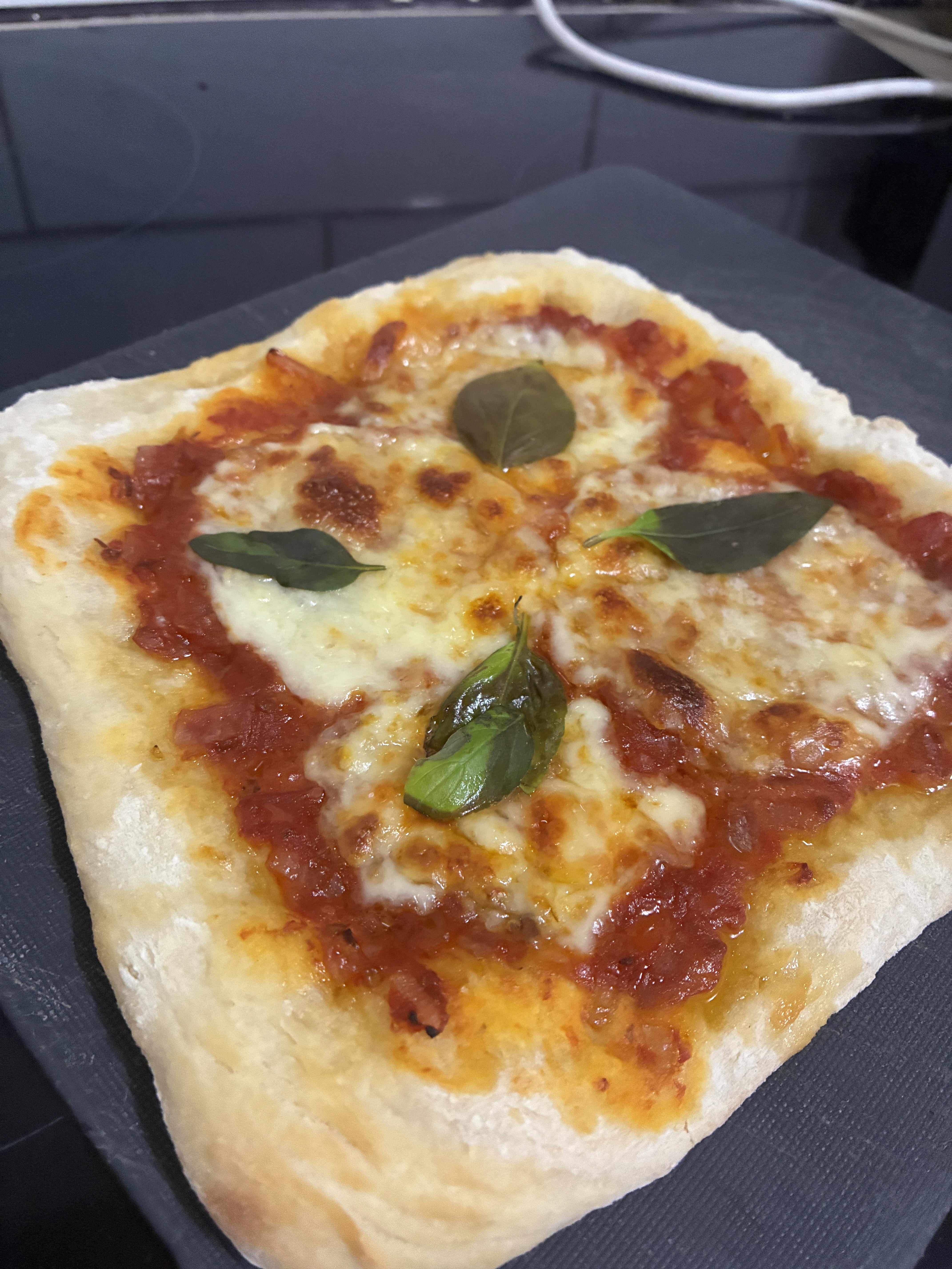 It is my very first time to make a pizza with house made dough / sauce ,