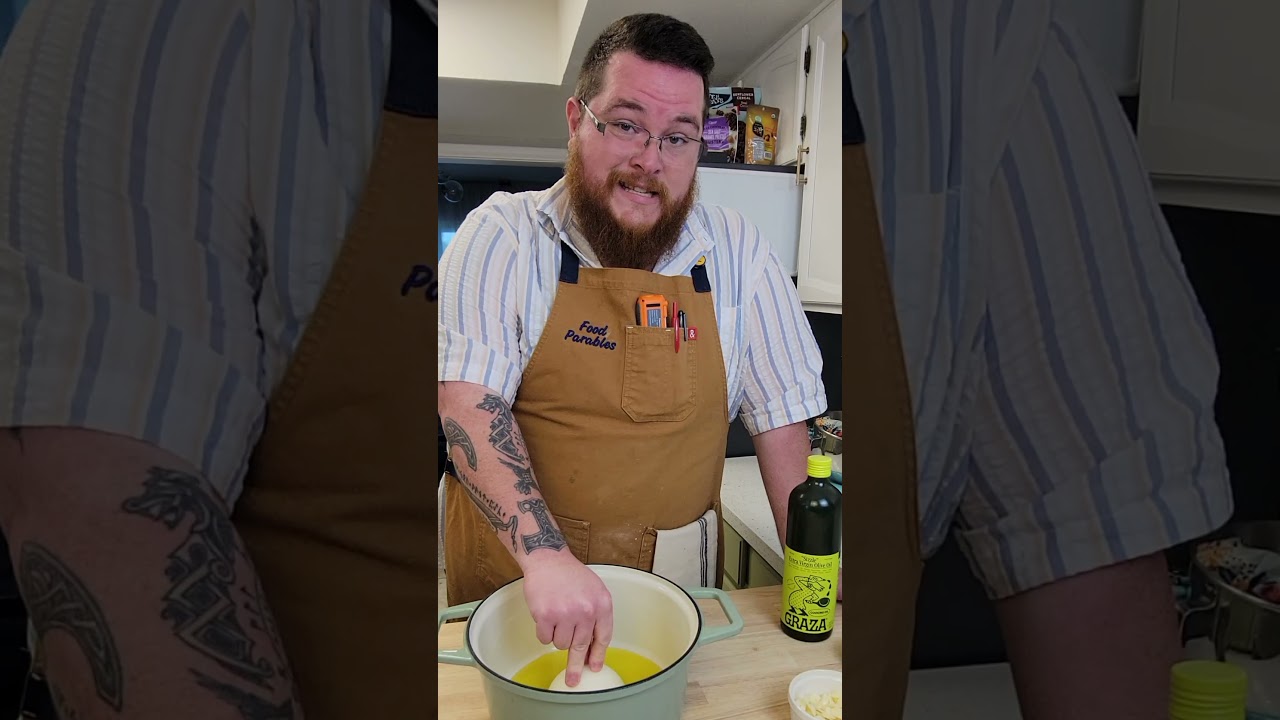 Slice the garlic, don’t mince it. Minced garlic in slow oil turns bitter. Sliced garlic gets soft and sweet.