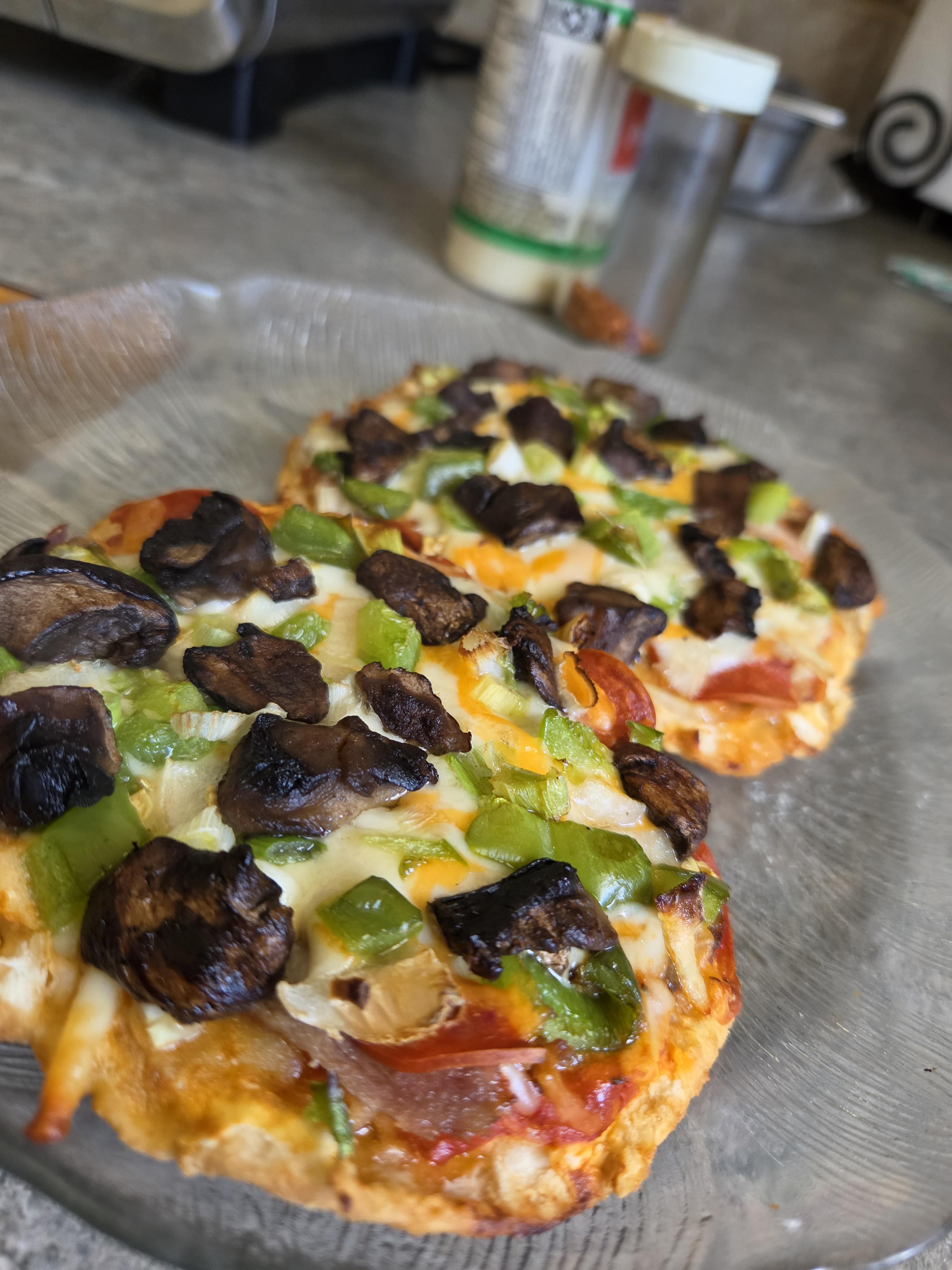 The taco ๐ŸŒฎ beef one. I added green peppers, mushroom ๐Ÿ„, turkey bacon, beef slices, green and white onions. I also added some Mexican shredded cheese ๐Ÿง€ mix which has jalapeรฑos, moteray jack, orange cheddar and mozzarella. ๐Ÿ˜Ž๐Ÿ‘Œ๐Ÿ”ฅ๐Ÿ’–