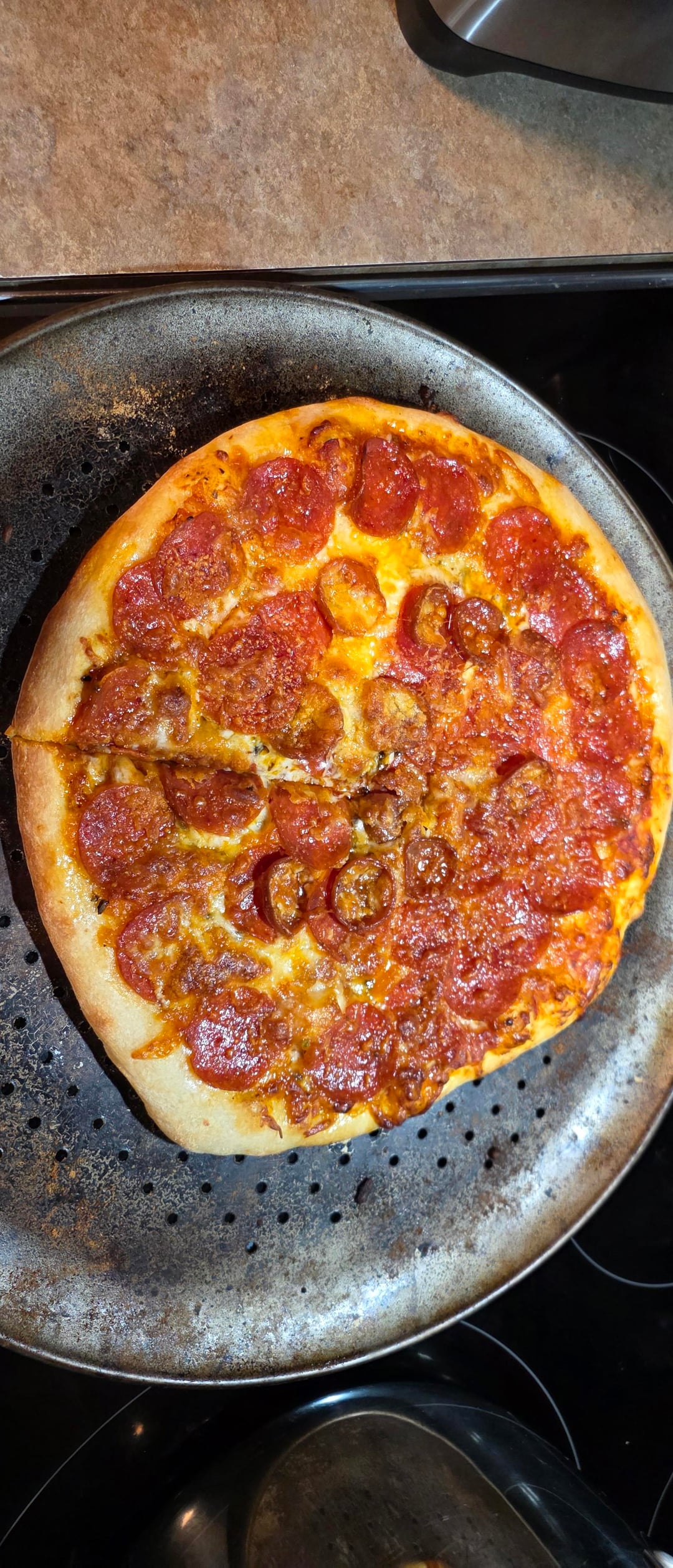One mix of dough split into two dough balls. First wife stretched real thin and second I did it like when I use to make pies at Blackjack pizza. Any tips on esthetics, forgot to take pics of the sliced cooked dough but it was excellent. Will edit later with recipe once I find it in my saved again.
